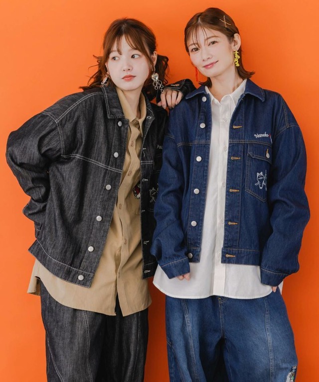 ScoLar Parity(スカラーパリティ)なめことネコずきんのおつかい デニムジャケット ブラック、ブルー 353101