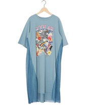 ScoLar(スカラー)スカラー×コラージュ柄 チュール重ねワンピース チャコールグレー、アイボリー、ブルー 151652です。
