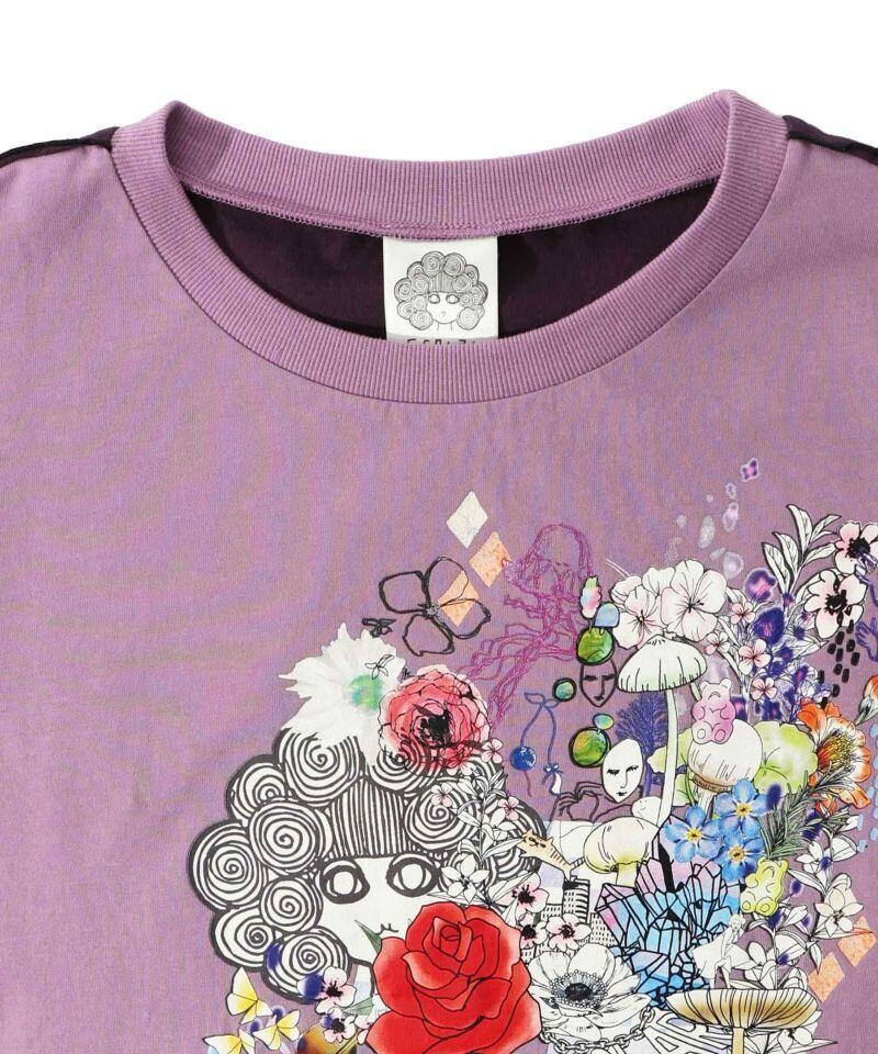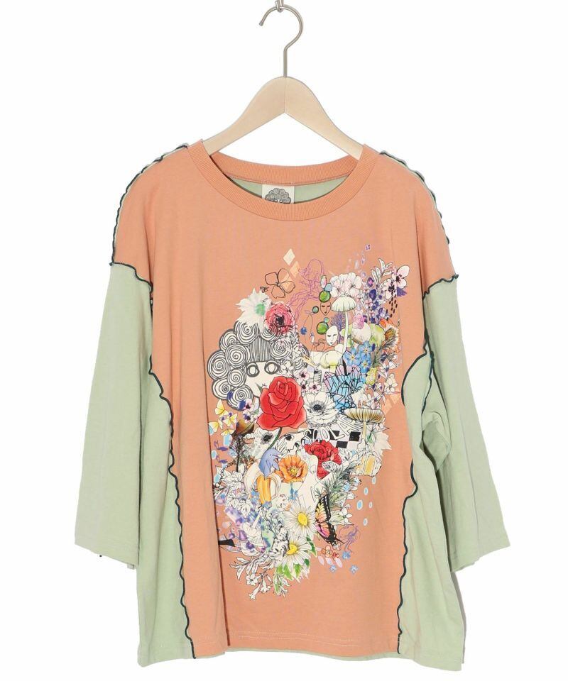 ScoLar(スカラー)スカラーちゃんと花 バイカラー7分袖Tシャツ サックス、イエロー、オレンジ、パープル 151654です。