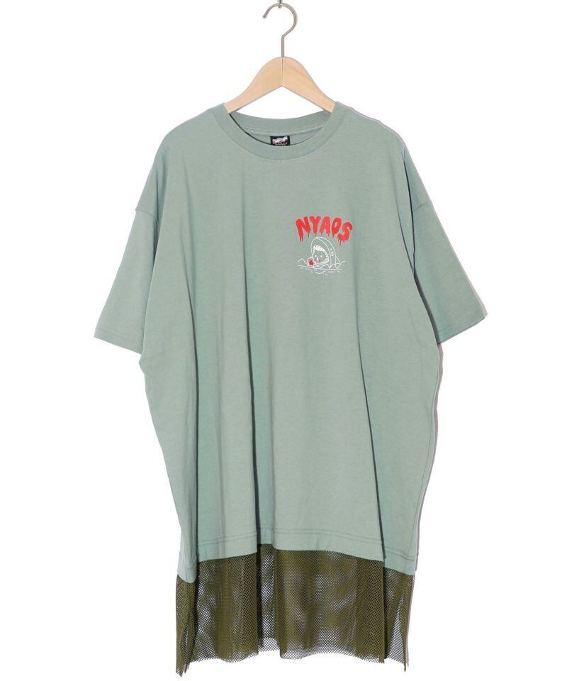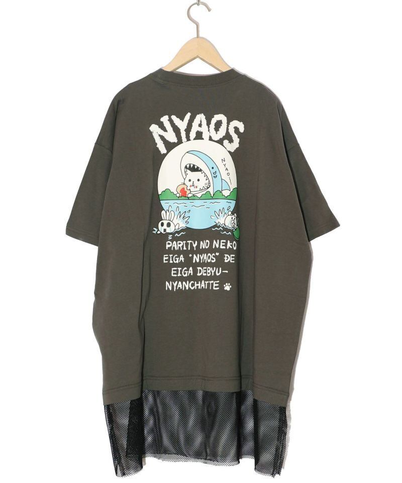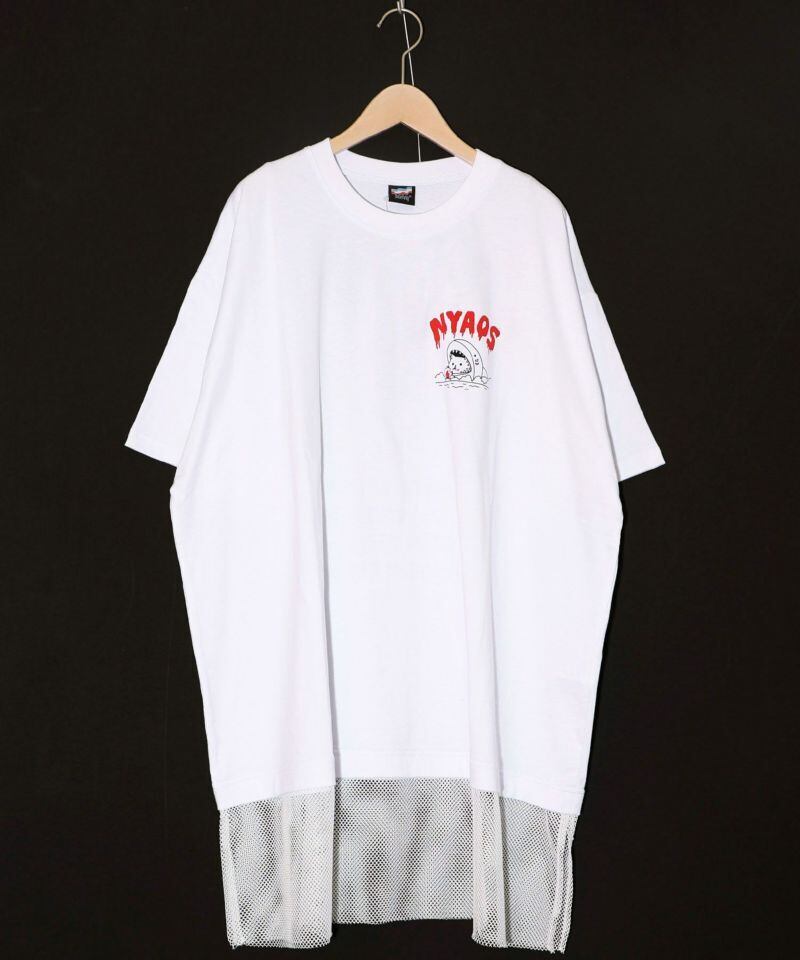 ScoLar Parity(スカラーパリティ)NYAOS柄メッシュ切替Tシャツ オフホワイト、チャコールグレー、グリーン 351116