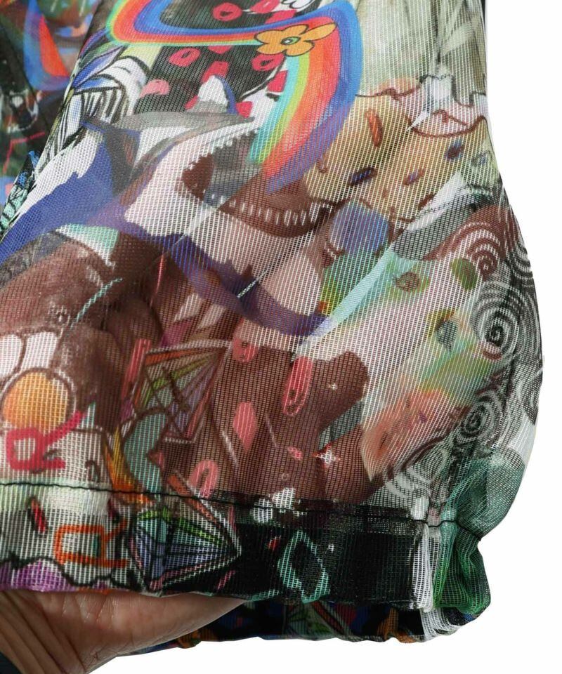 薄くて軽いメッシュ素材を使用し、ゆとりあるシルエットでトレーナーなどに重ねても