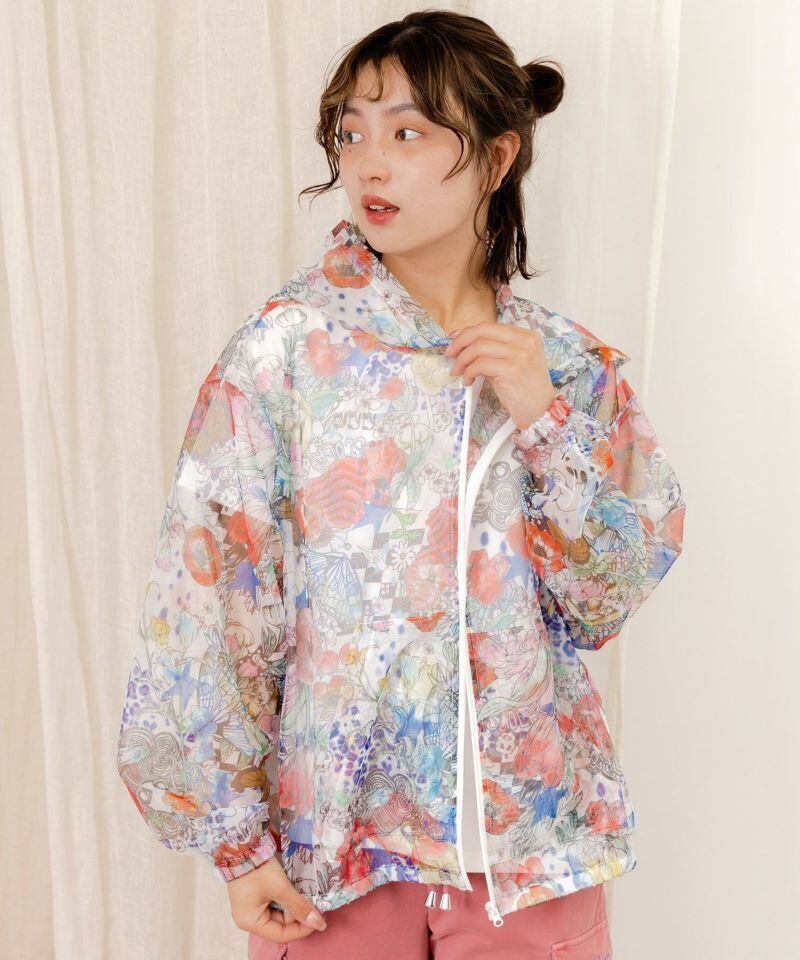 ScoLar(スカラー)花・アニマルスカラー 2柄展開メッシュパーカー オフホワイト、ブラック 151658です。