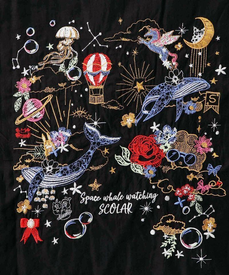 ScoLar(スカラー)メルヘン刺繍 チュール重ねブルゾン アイボリー、ブラック 151671