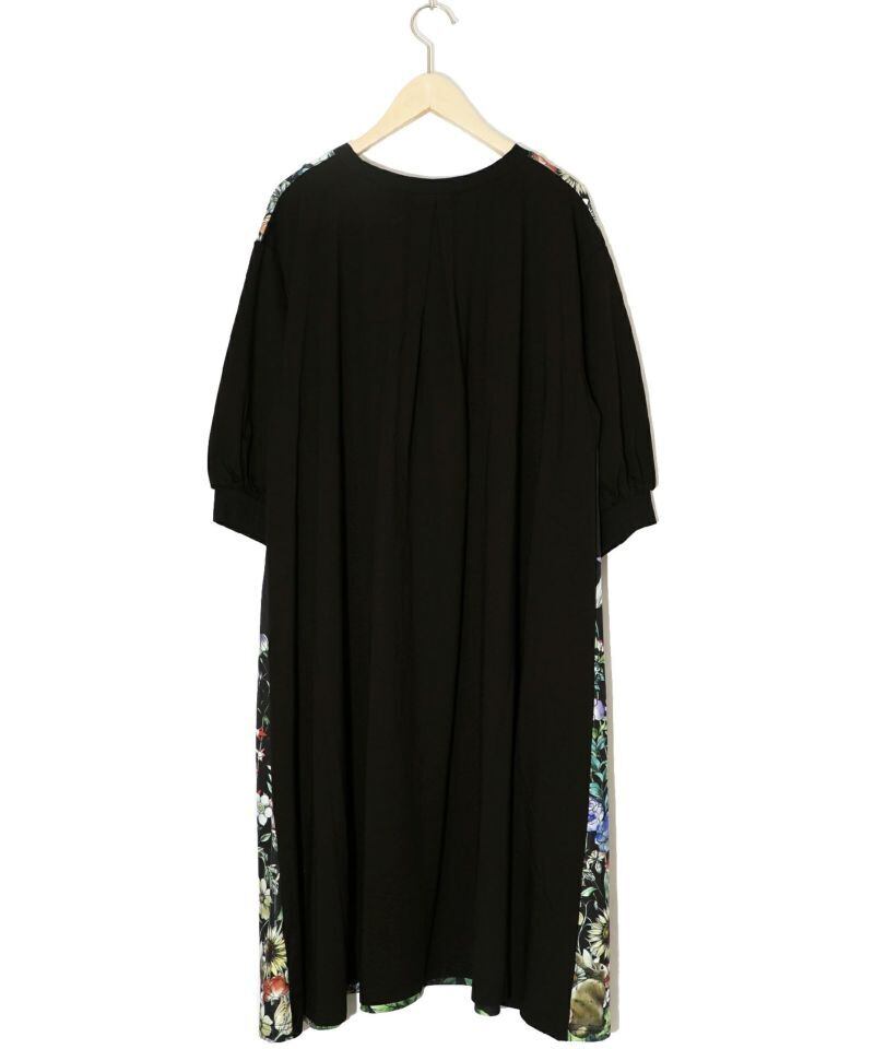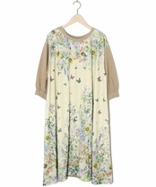 ISScoLar(イズスカラー)蝶の舞う花畑とウサギプリントワンピース ブラック、ベージュ 552218