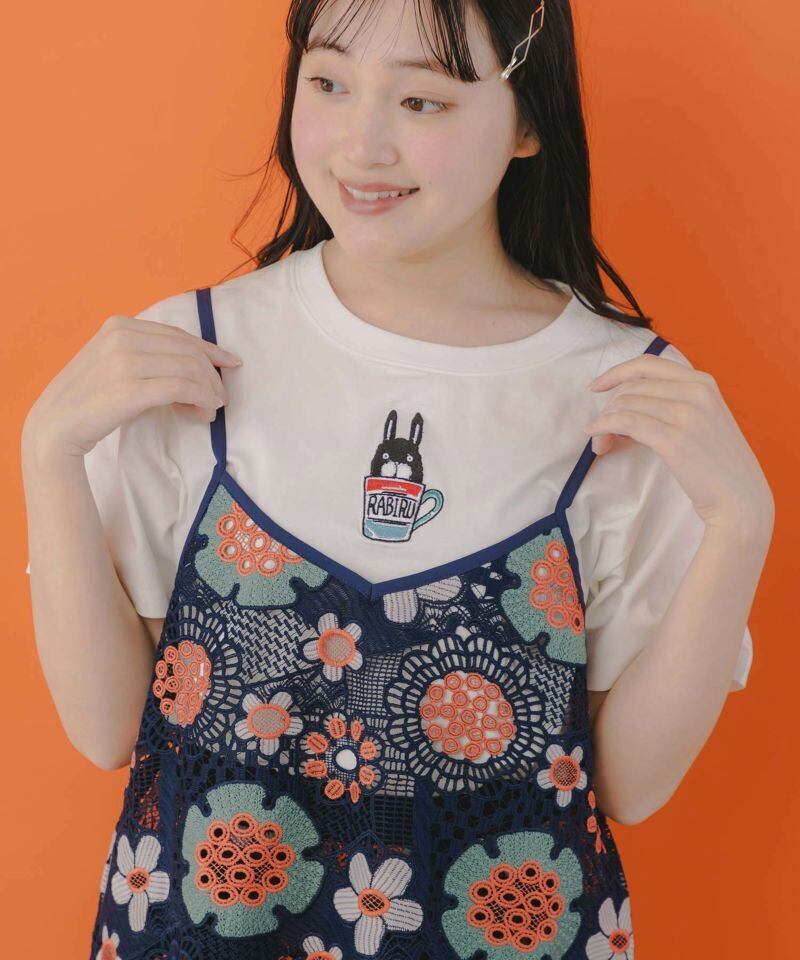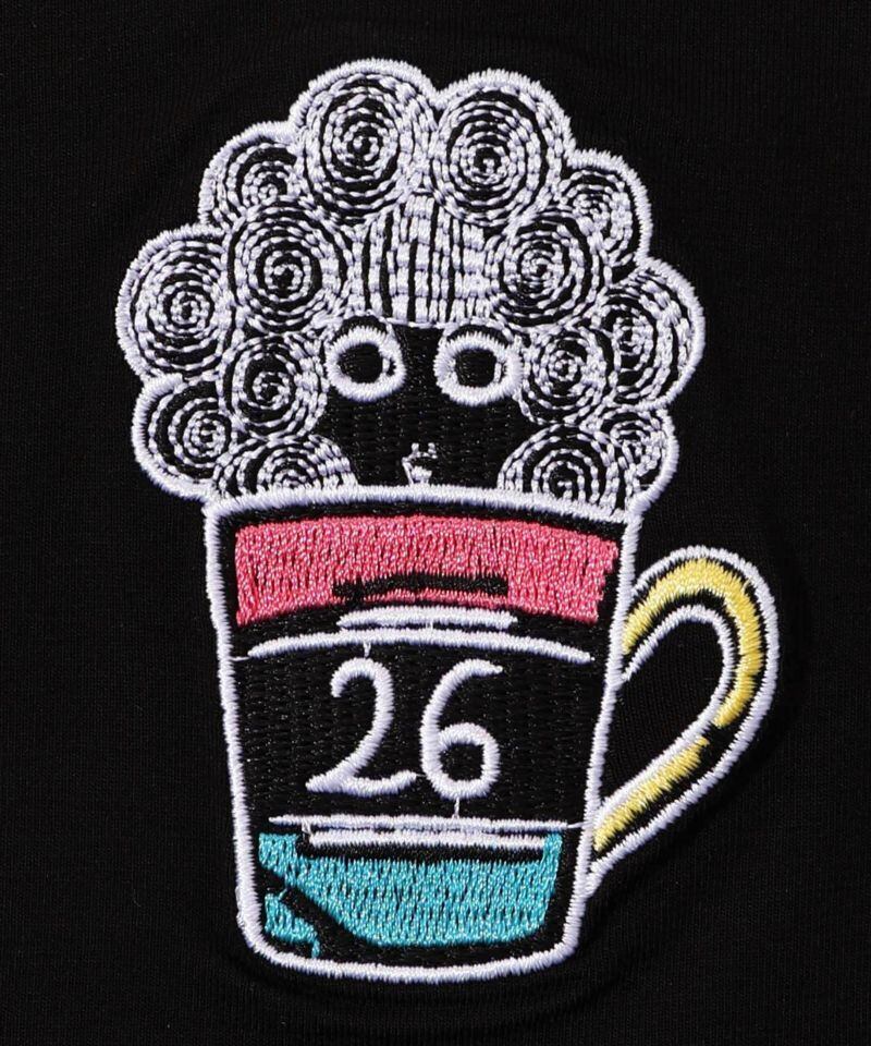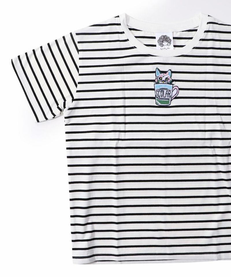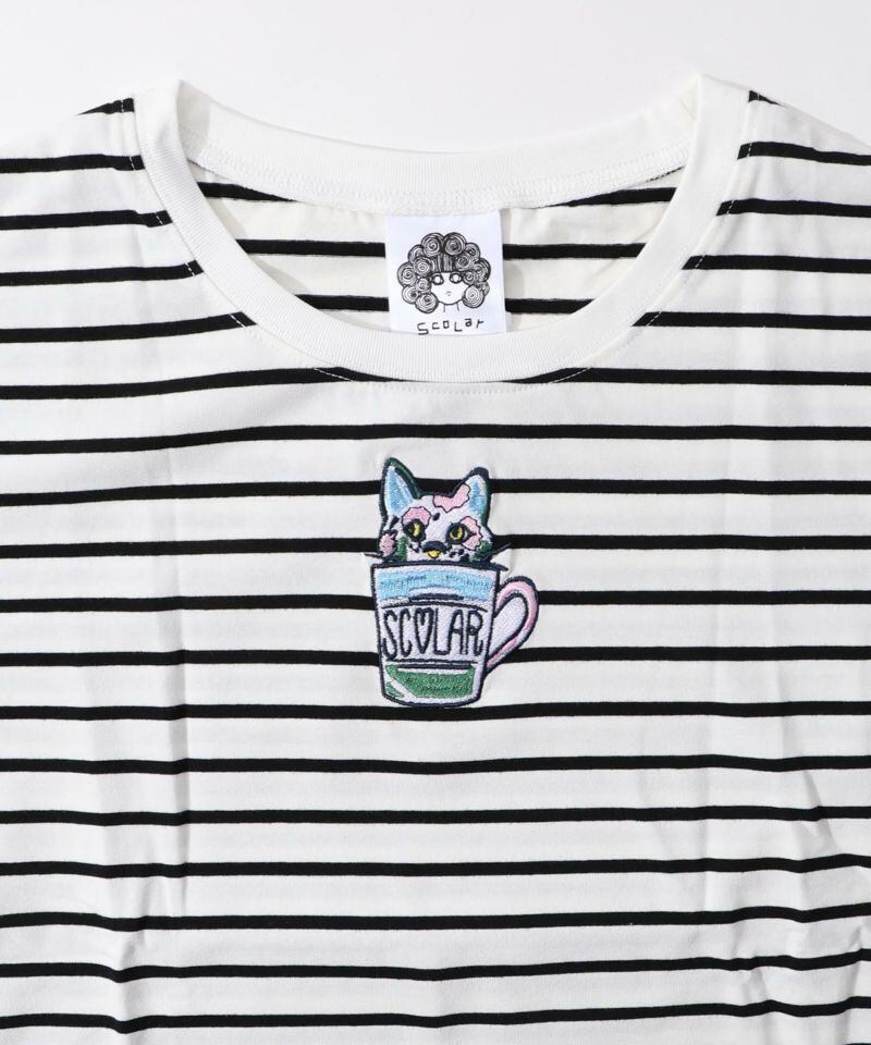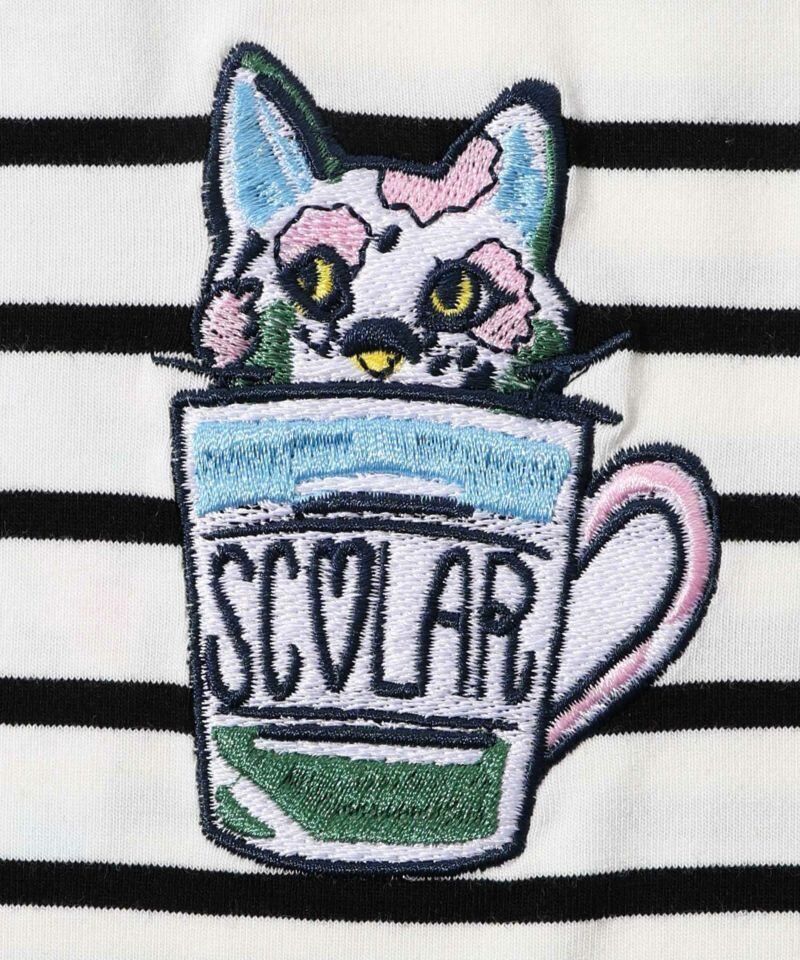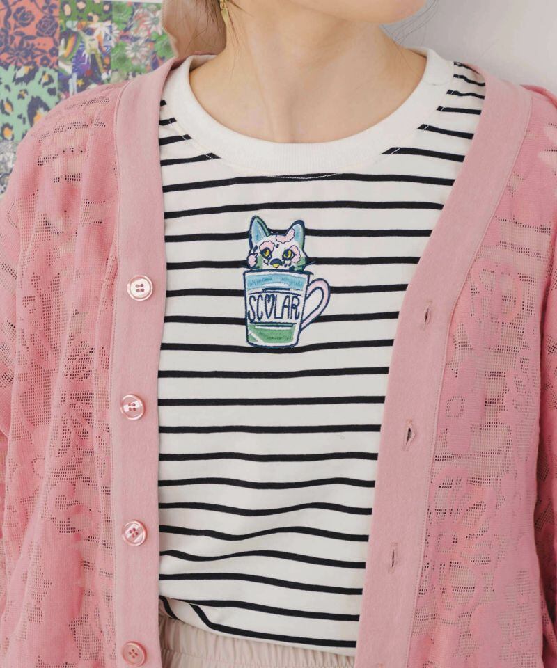 胸元にスカラーちゃんやキャラがカップに入ったキュートな刺繍が施されており、