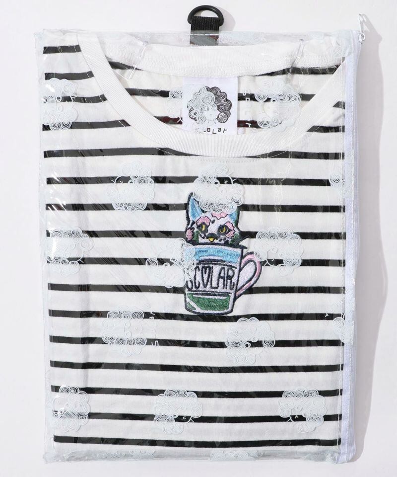 ScoLar(スカラー)ラビル・ネコ・スカラー刺繍 クリアポーチ付Tシャツ オフホワイト、チャコールグレー、ブラック 151684です。