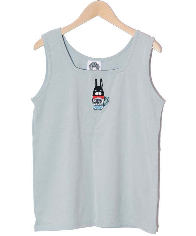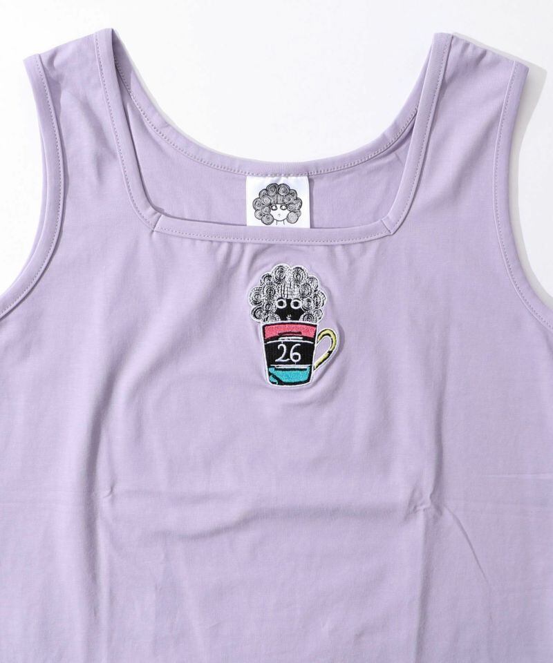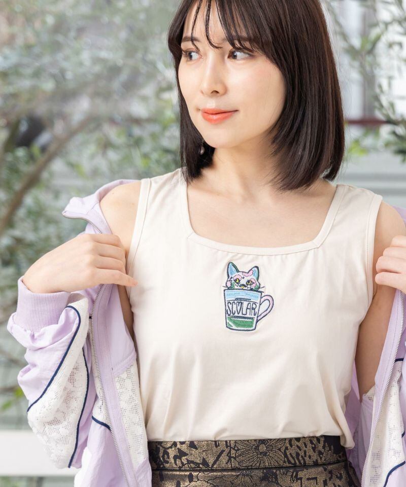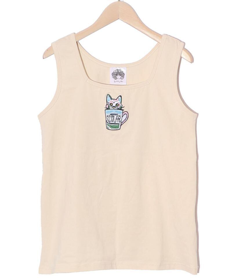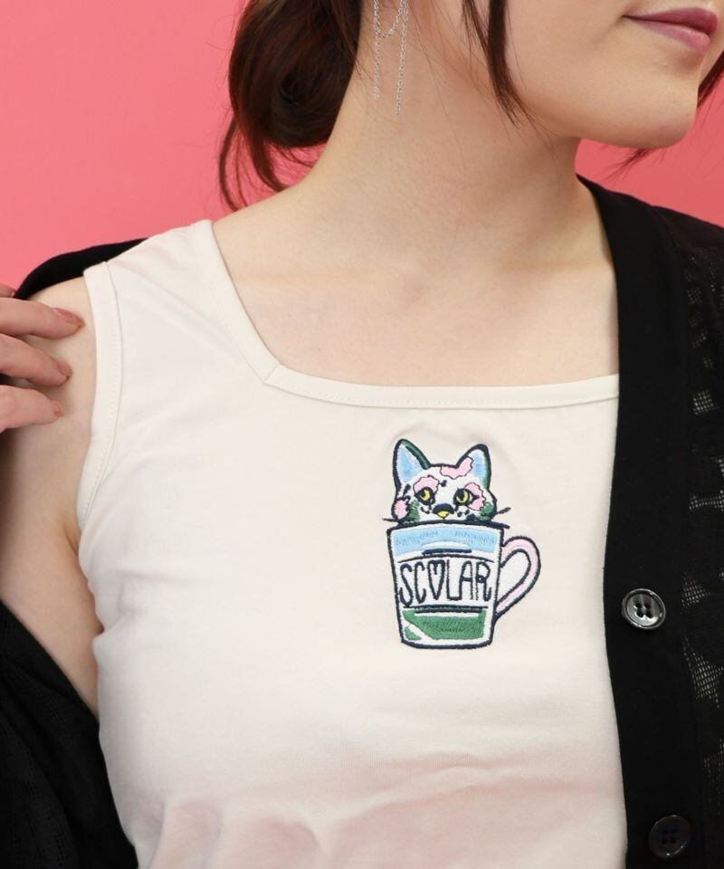 ScoLar(スカラー)ネコ・ラビル・スカラー刺繍 クリアポーチ付きタンクトップ アイボリー、サックス、パープル 151685
