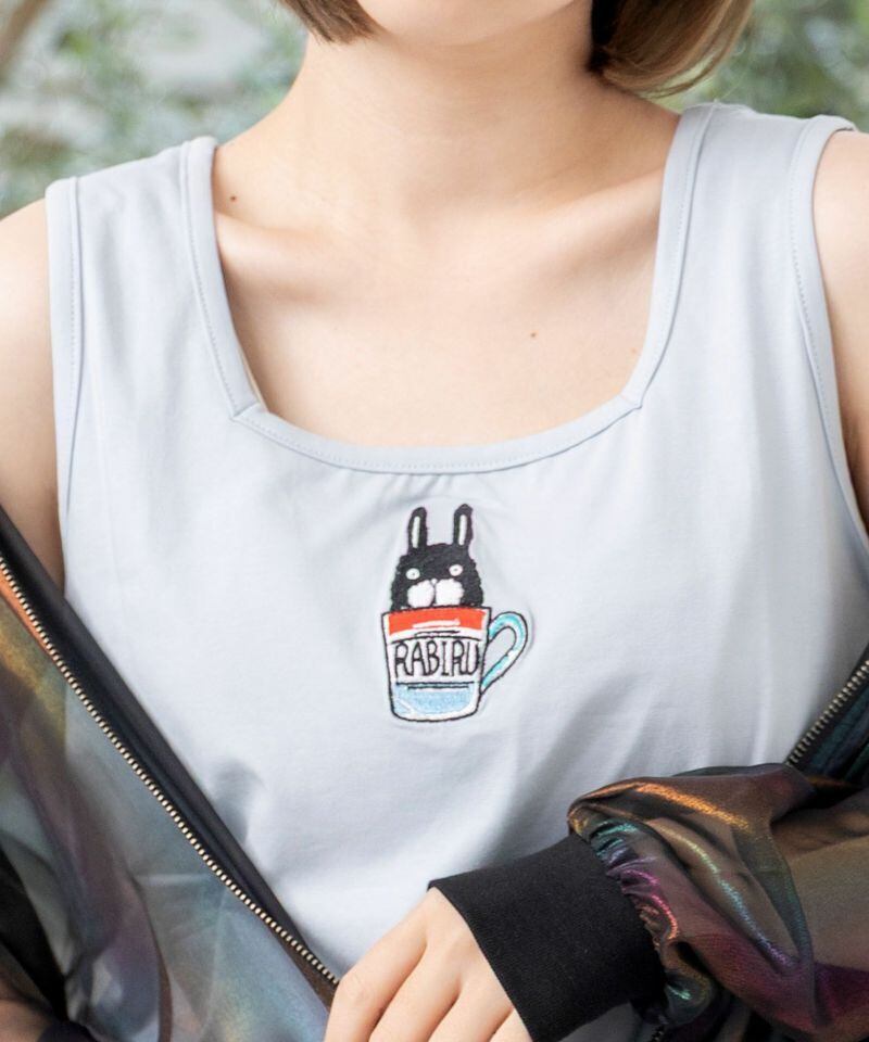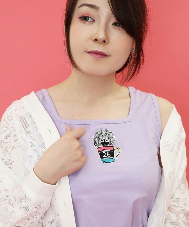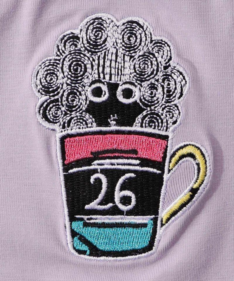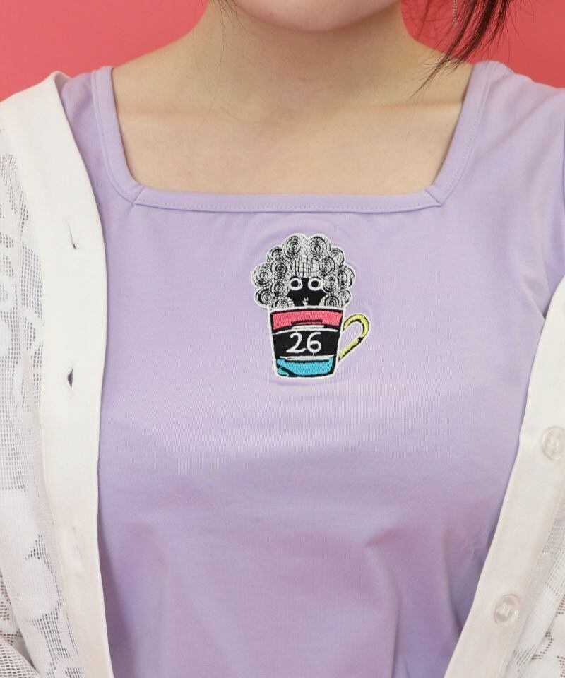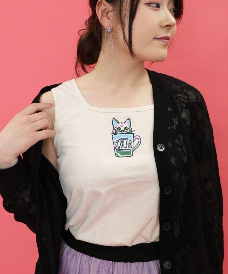 胸元にスカラーちゃんやキャラがカップに入ったキュートな刺繍が施されており、
