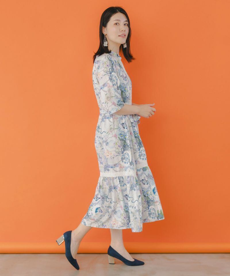 身生地と同じ柄のベルト付きで、ウエストマークしてメリハリのある着こなしもお楽しみいただけます。