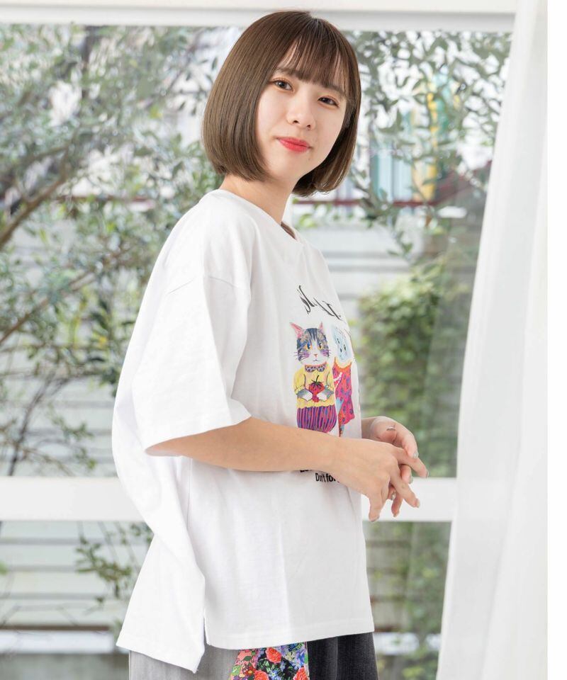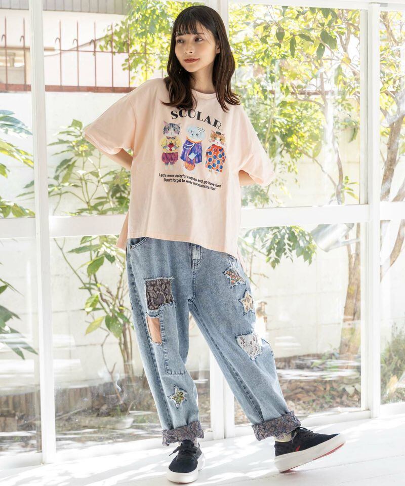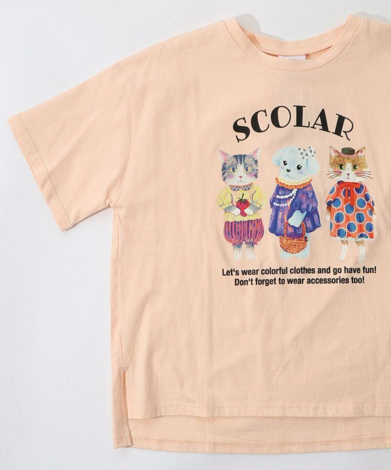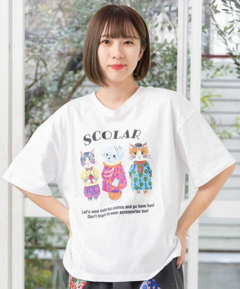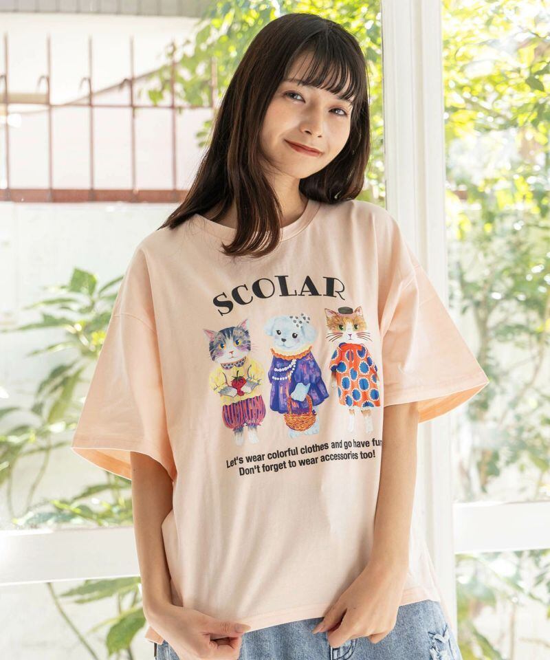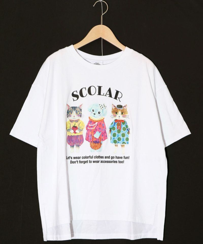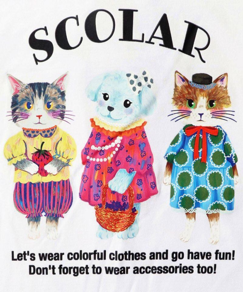 ScoLar(スカラー)おしゃれネコとワンコのアニマル柄Tシャツ オフホワイト、チャコールグレー、ピンク 151680です。