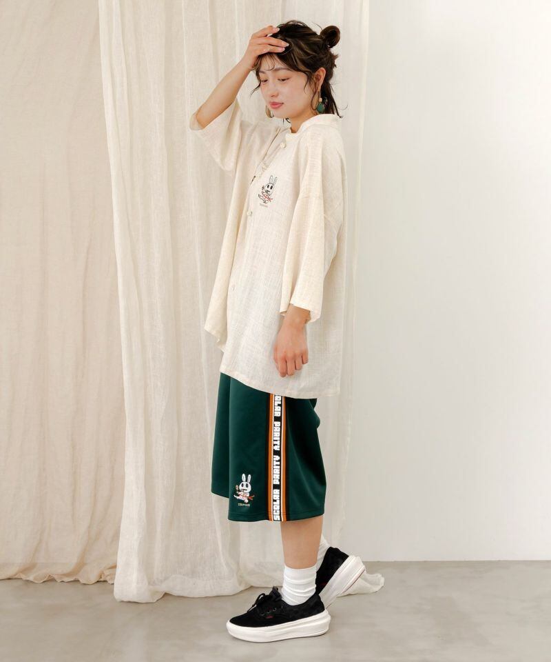 ScoLar Parity(スカラーパリティ)ウサギとクマ刺繍 カンフーチャイナシャツ アイボリー、ブラック、ブルー 352106 です。
