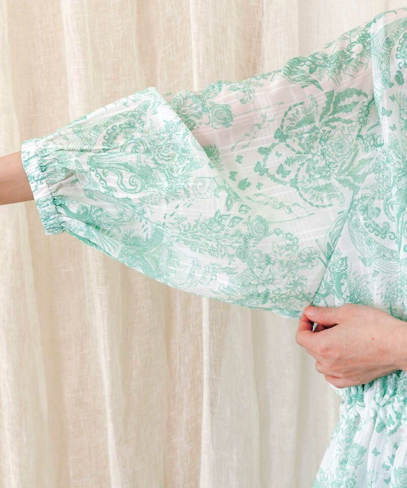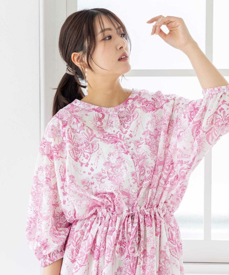 トワルドジュイ風に描いてプリントした上品で大人っぽく着こなせる一枚。