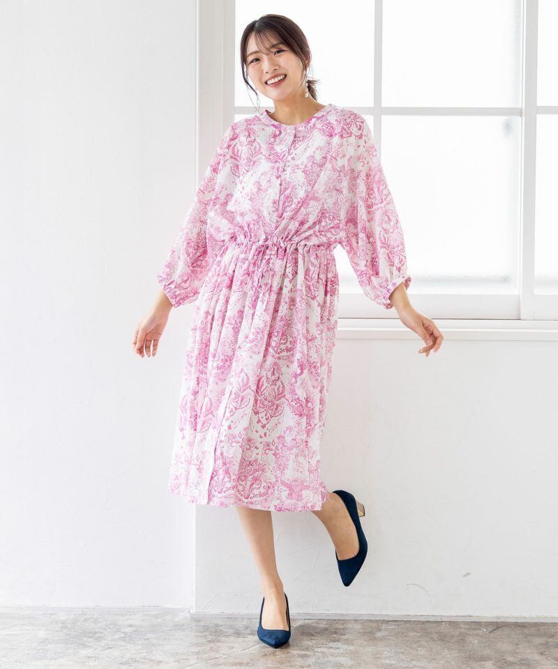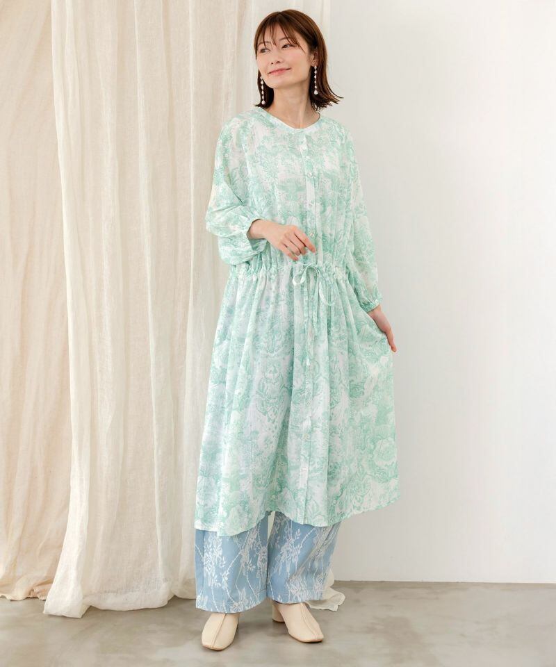 そのままワンピースとしてはもちろん、前を開けて軽めの羽織りものとしても