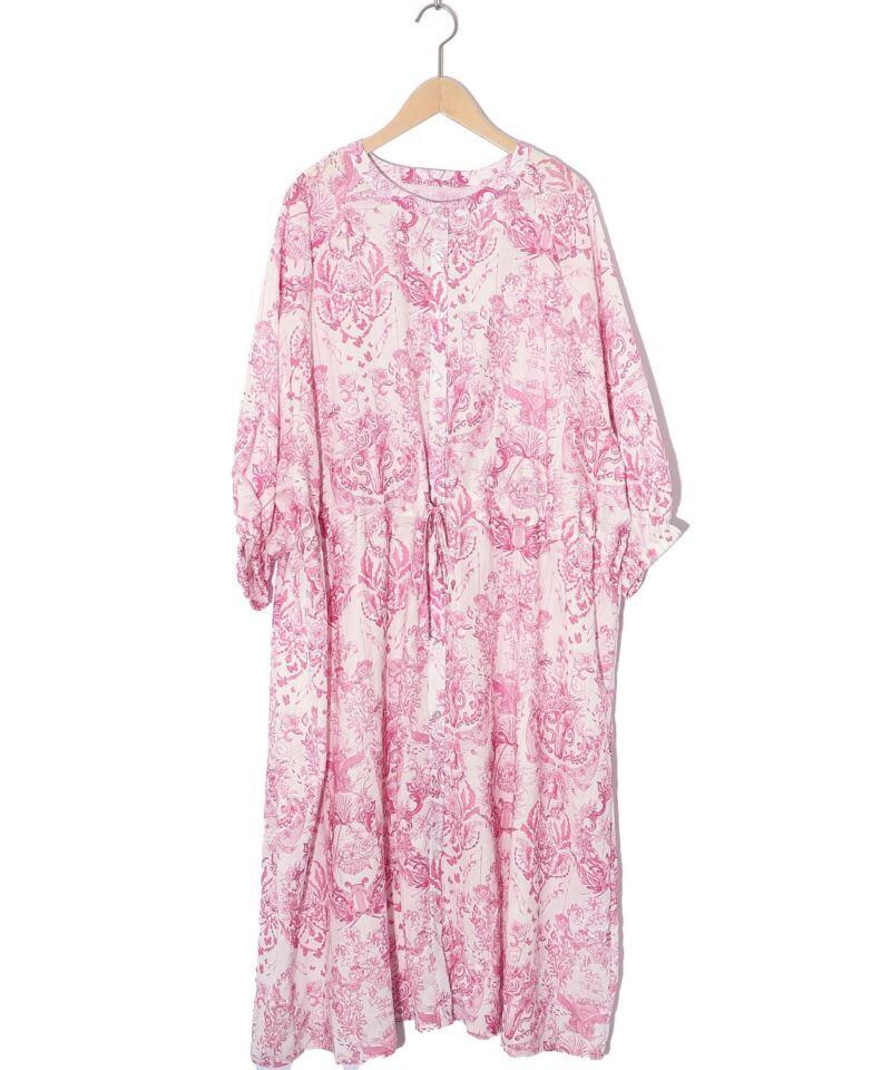 ゆったりとしたラグランスリーブが特徴的で、ウエスト紐でウエスト調節も可能。