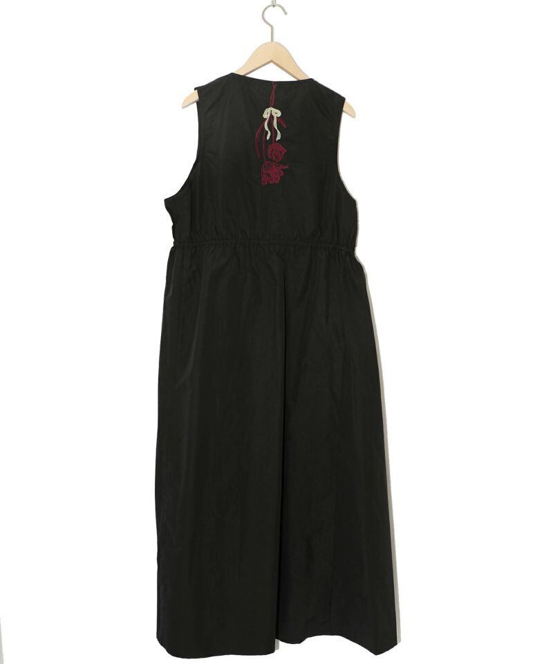 ISScoLar(イズスカラー)花刺繍前開きノースリーブワンピース ブラック、グリーン 552207