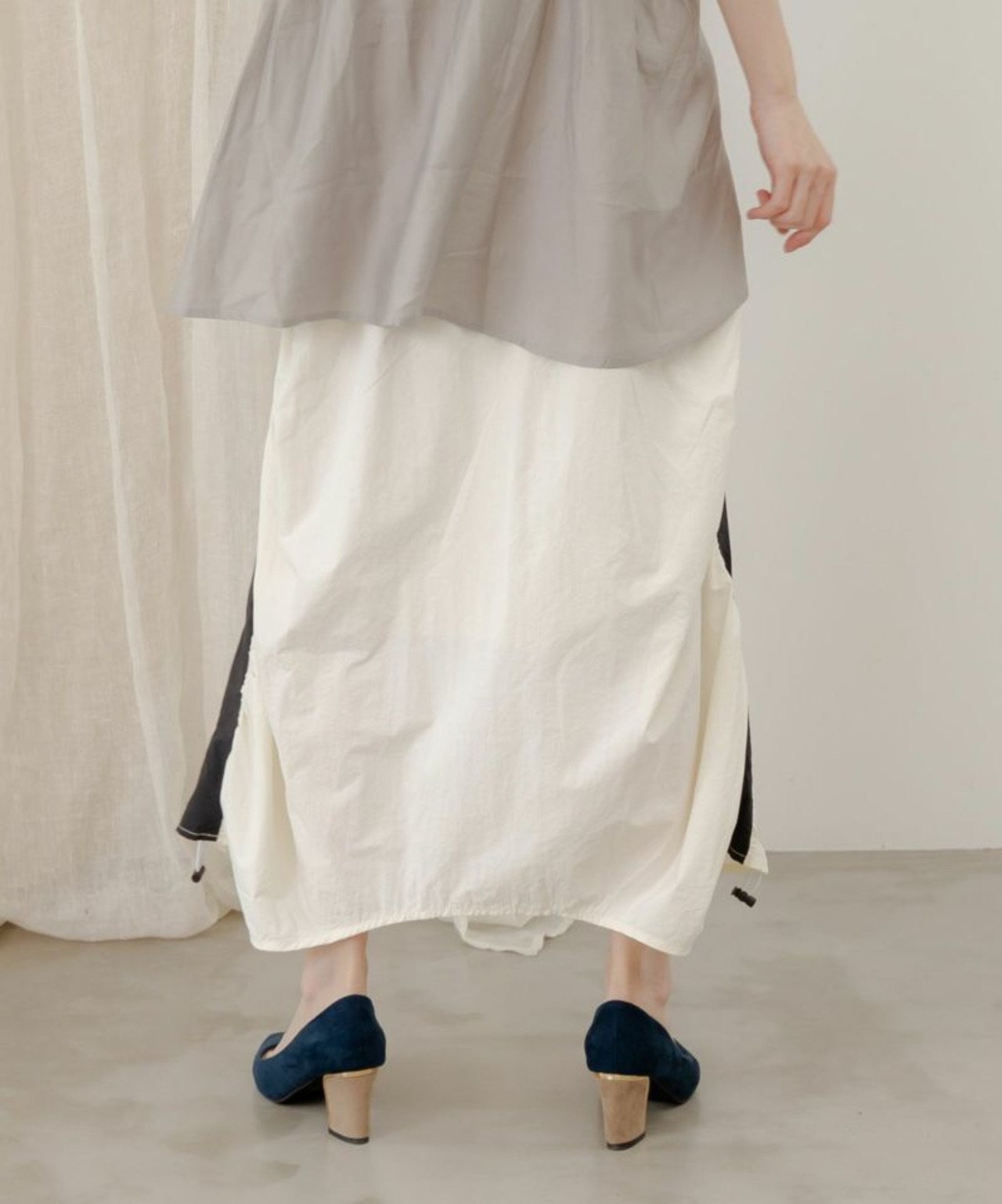 ギャザーが生み出す立体感がコーディネートに女性らしいニュアンスを添えてくれます。