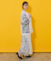 ISScoLar(イズスカラー)紫陽花のある海辺のお部屋柄 チュール切替カーディガン オフホワイト、ブラック 552227