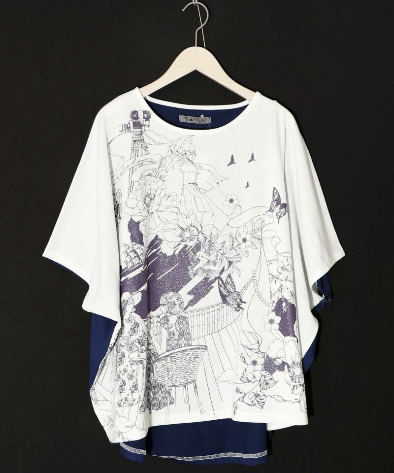 ISScoLar(イズスカラー)海辺のティータイム柄 切替プルオーバー オフホワイト、アイボリー、ブラック 552228 です。