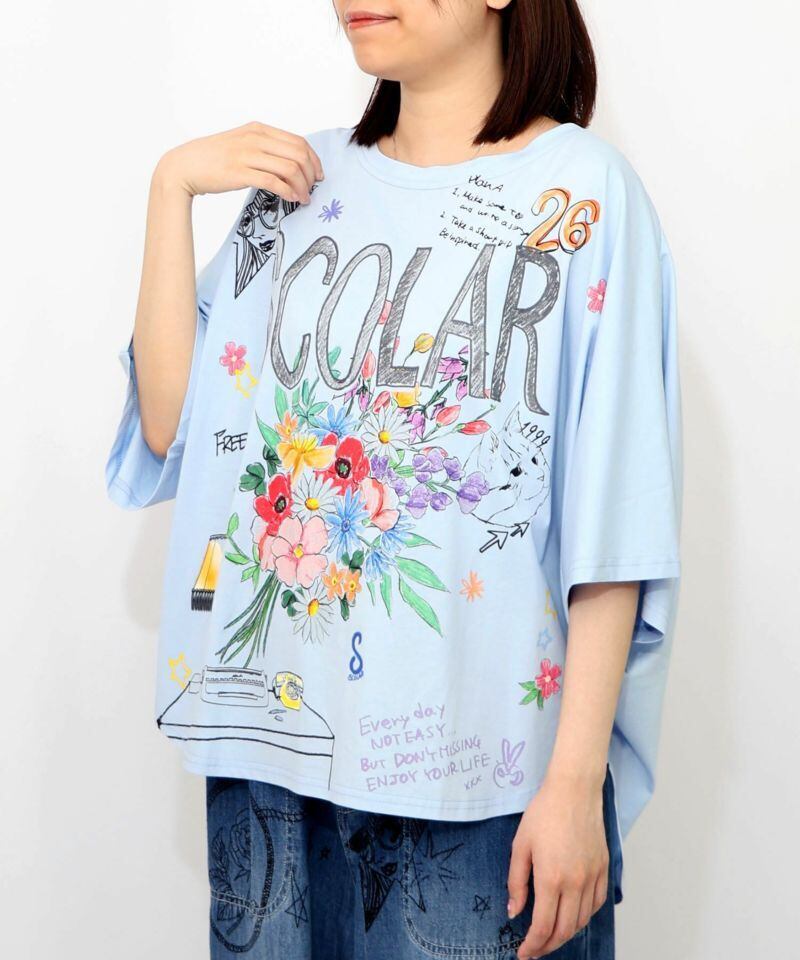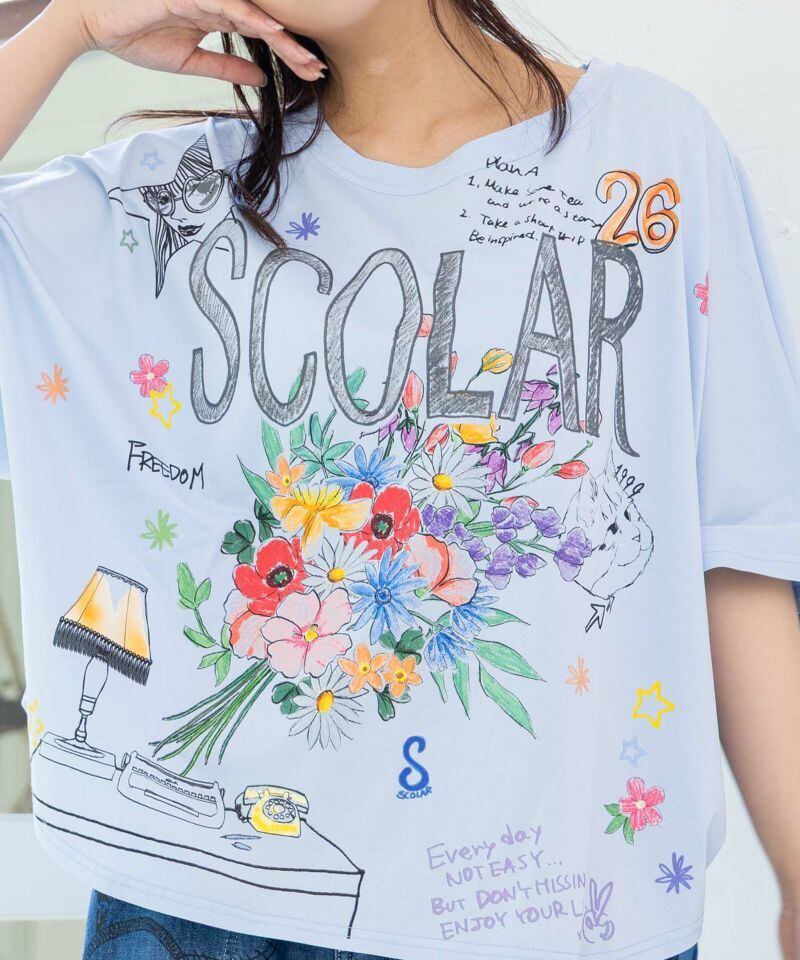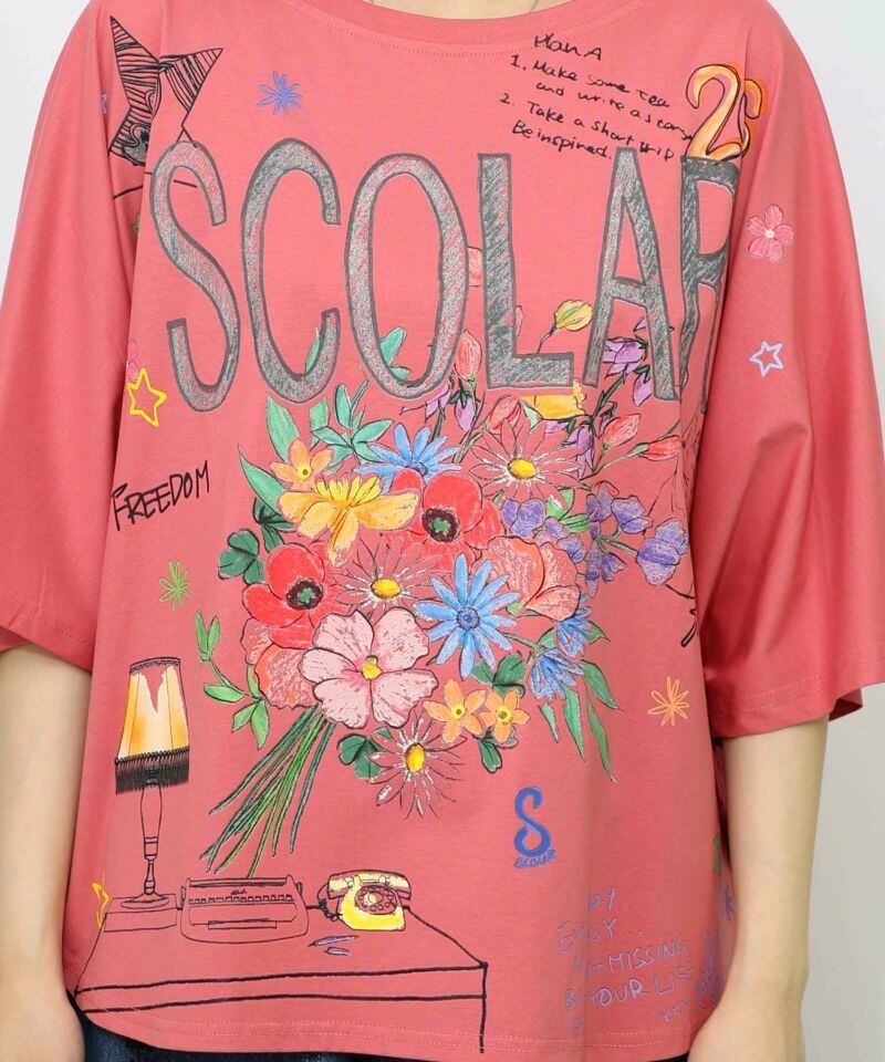 ScoLar(スカラー)スカラーロゴ花束柄 接触冷感プルオーバー オフホワイト、ピンク、サックス、ネイビー 152685 です。