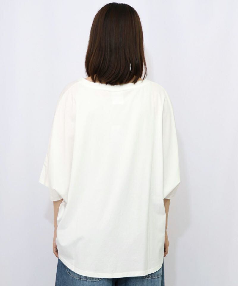 ゆったりとしたドルマンスリーブに、後ろが少し長めになった丈感でゆるっとラフに着ていただけます。