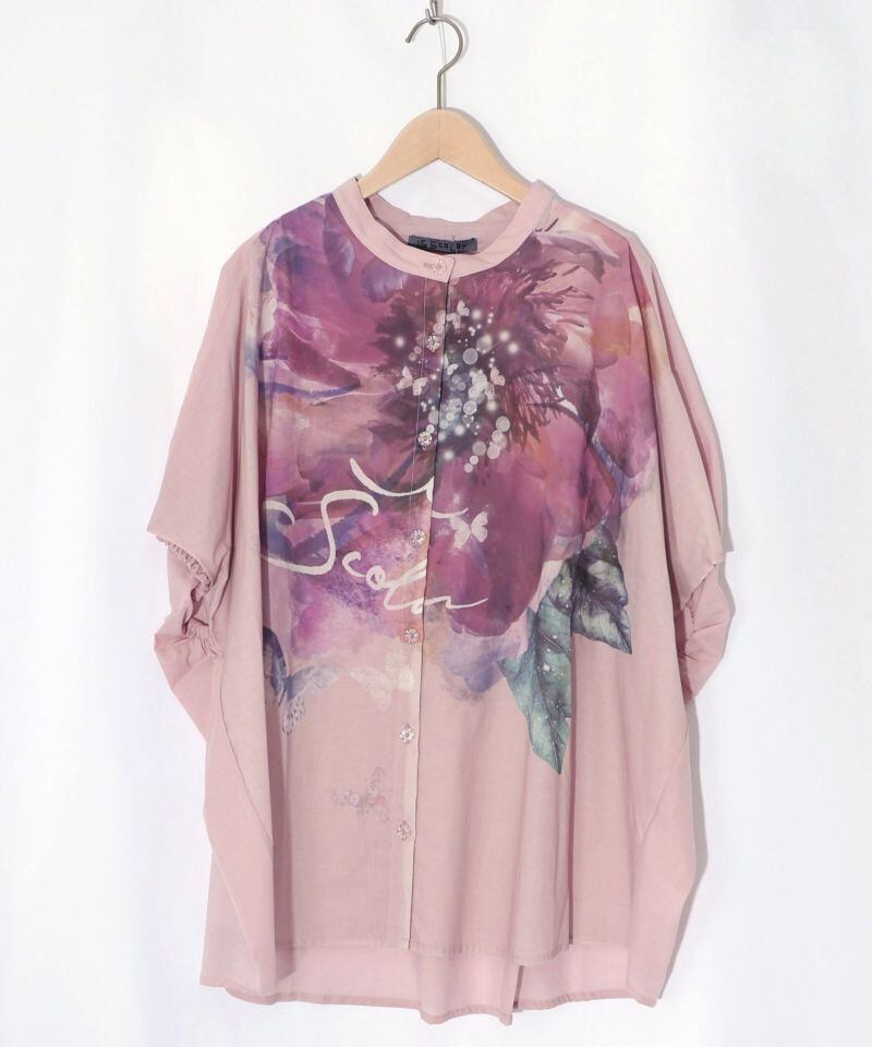 ISScoLar(イズスカラー)大輪の水彩花柄シャツ オフホワイト、アイボリー、ピンク 552244