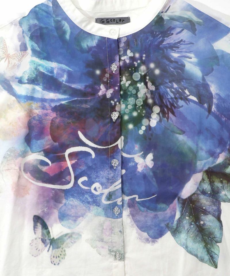 ISScoLar(イズスカラー)大輪の水彩花柄シャツ オフホワイト、アイボリー、ピンク 552244 です。