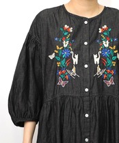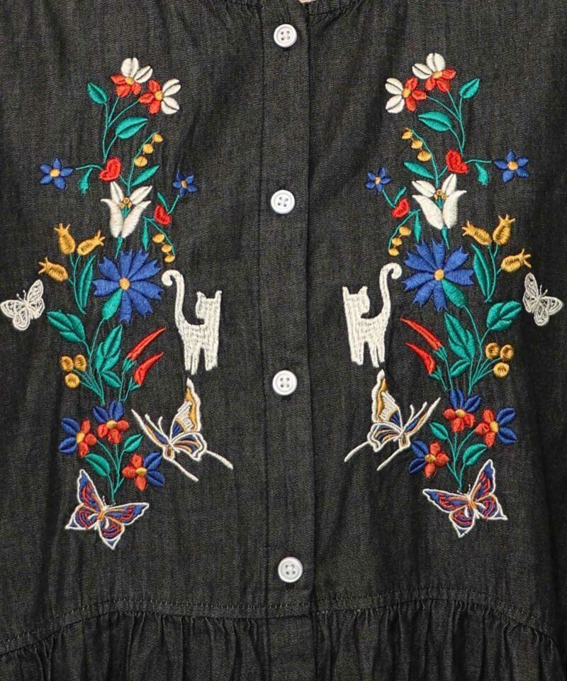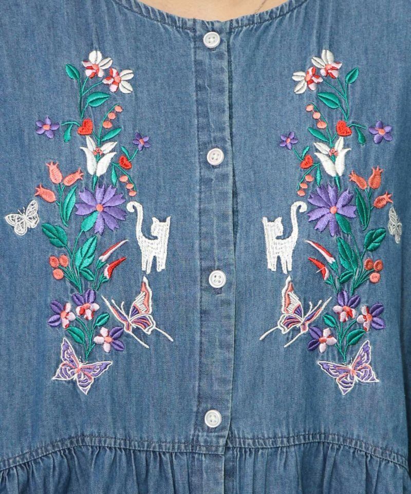 胸元にシンメトリーにあしらわれたお花や蝶々・ネコの刺繍がエレガントで華やかな雰囲気に♪