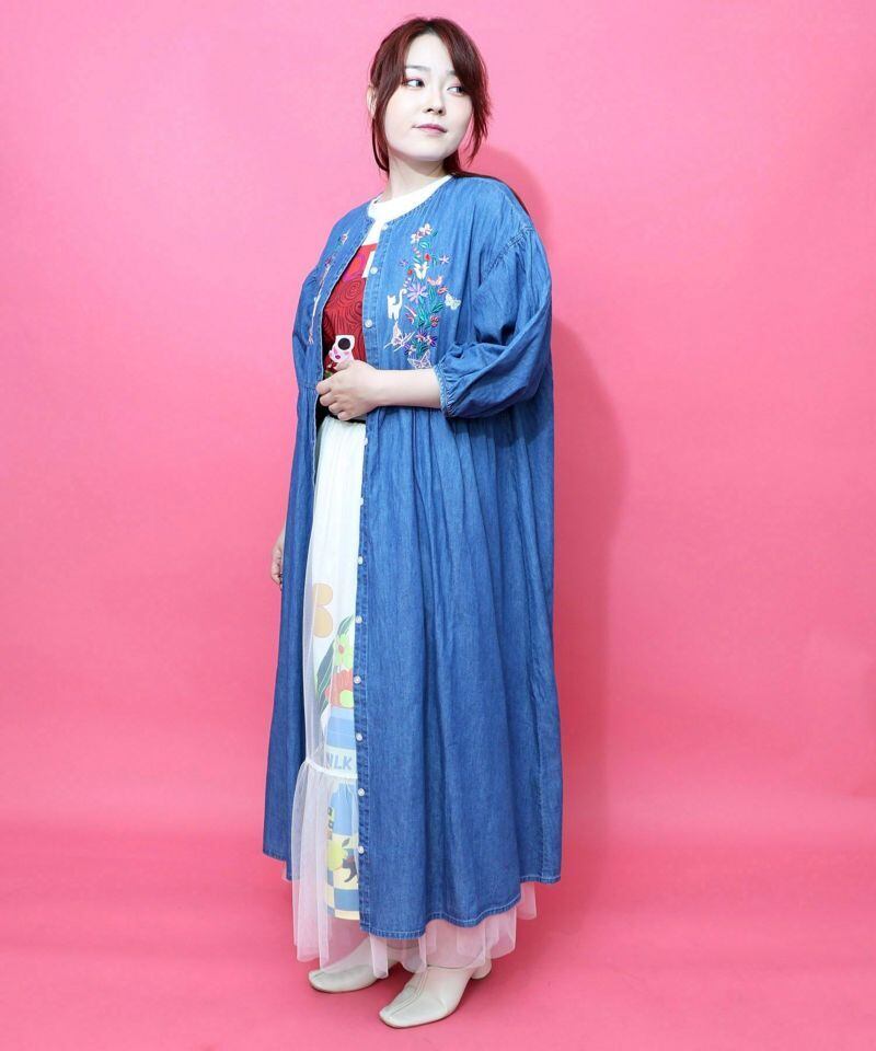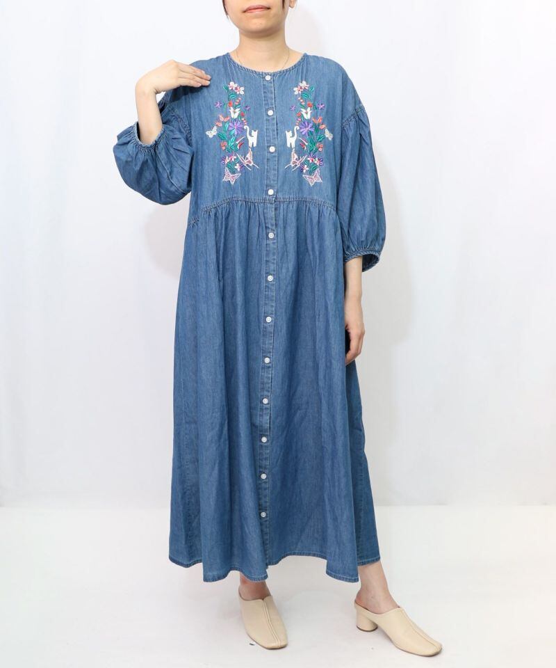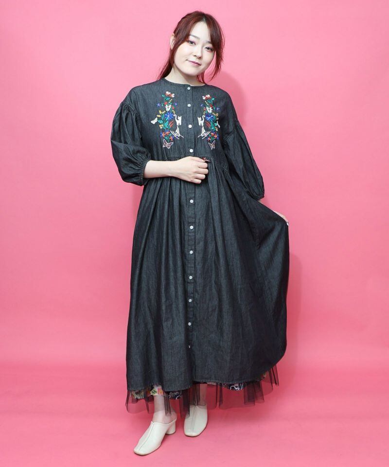 ScoLar(スカラー)花柄刺繍デニムグラデーション シャツワンピース ブラック、ブルー 152736