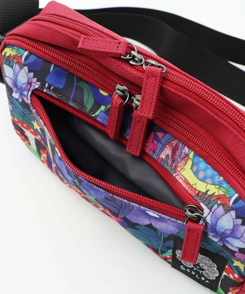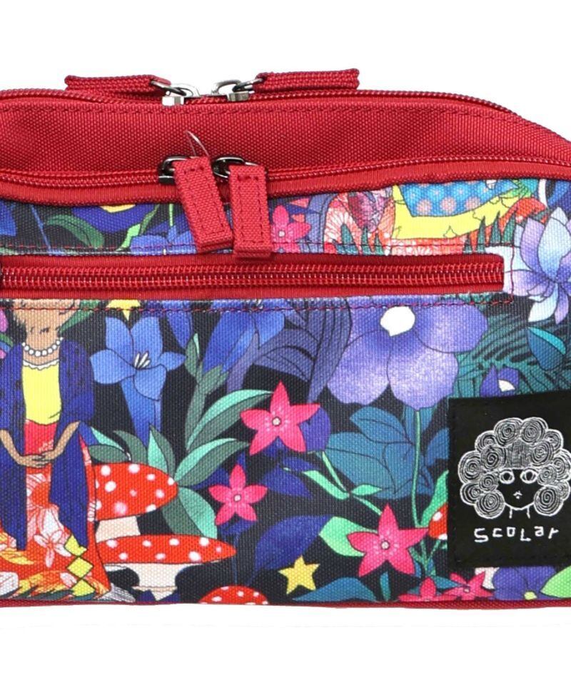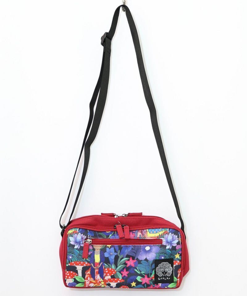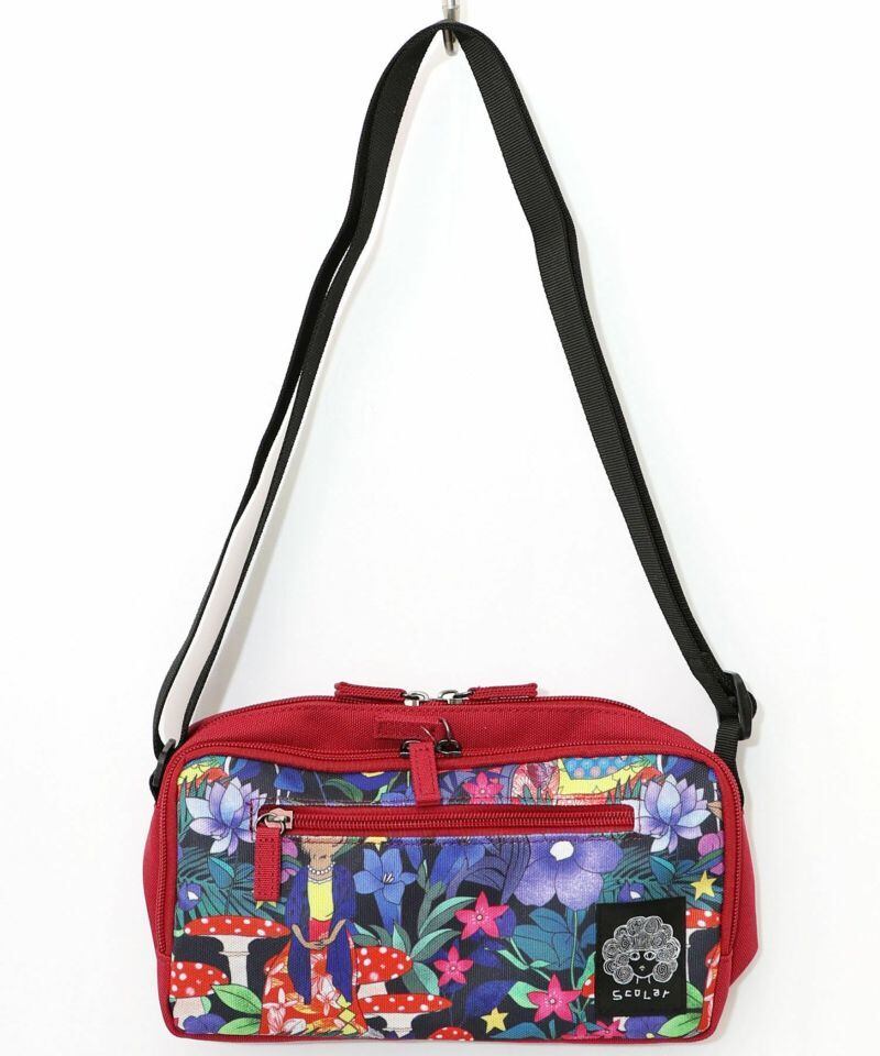 スカラーでも人気のキノコやお花柄を鮮やかに描いた、存在感たっぷりなミニショルダーバッグ。