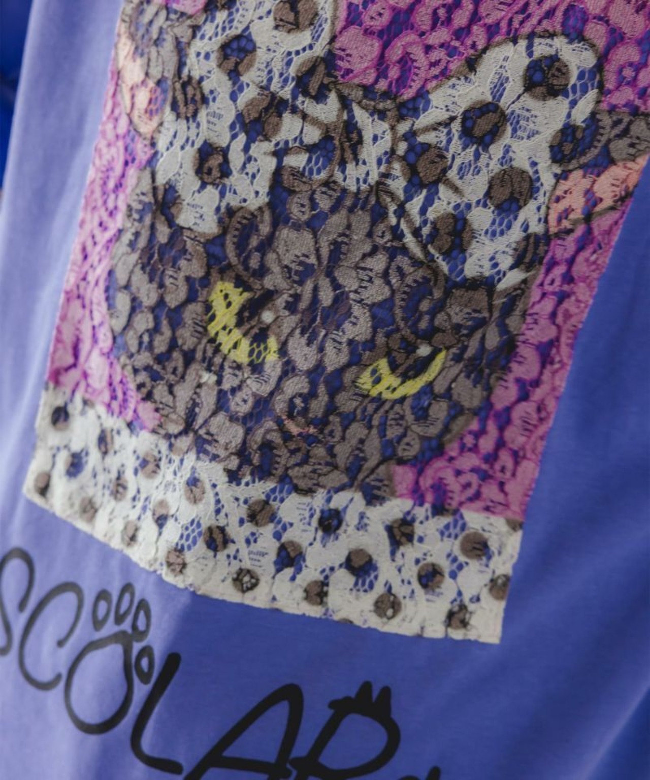 ScoLar(スカラー)花とネコ柄のレイヤード風 接触冷感ロンT ブラック、ブルー 152743 です。