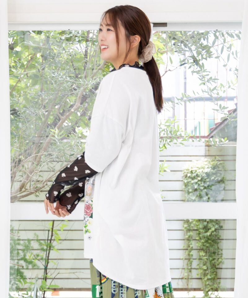 ScoLar(スカラー)ウサぬい柄レイヤード風 接触冷感チュニック オフホワイト、ブラック 152745