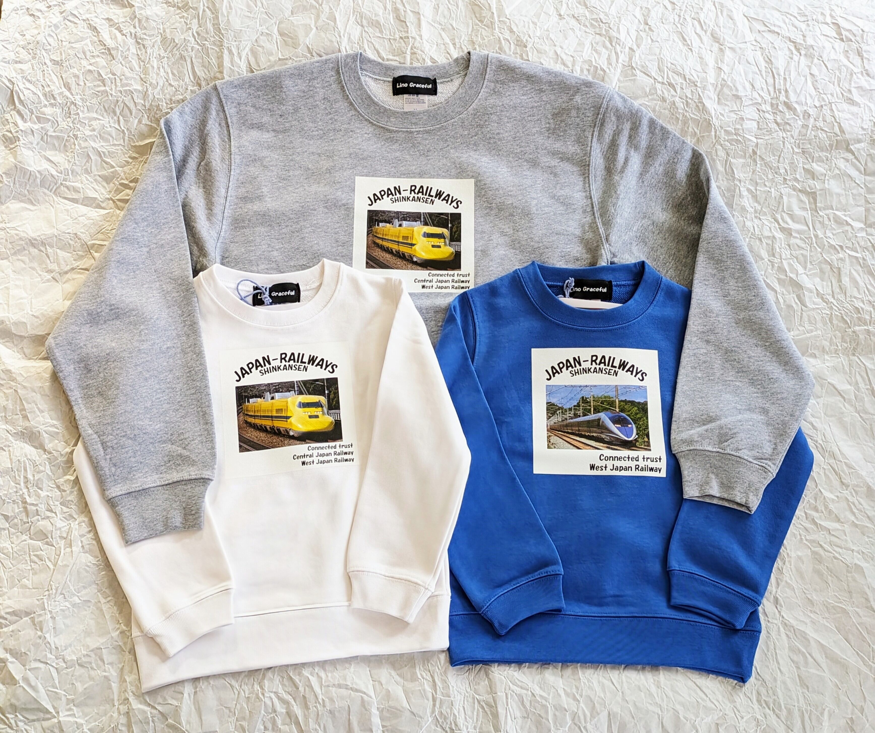 上質な裏パイルのスウェットボディに、JR東海・JR西日本提供のリアル車両(公式写真)をプリントデザインしたかっこいいスウェットトレーナーです。