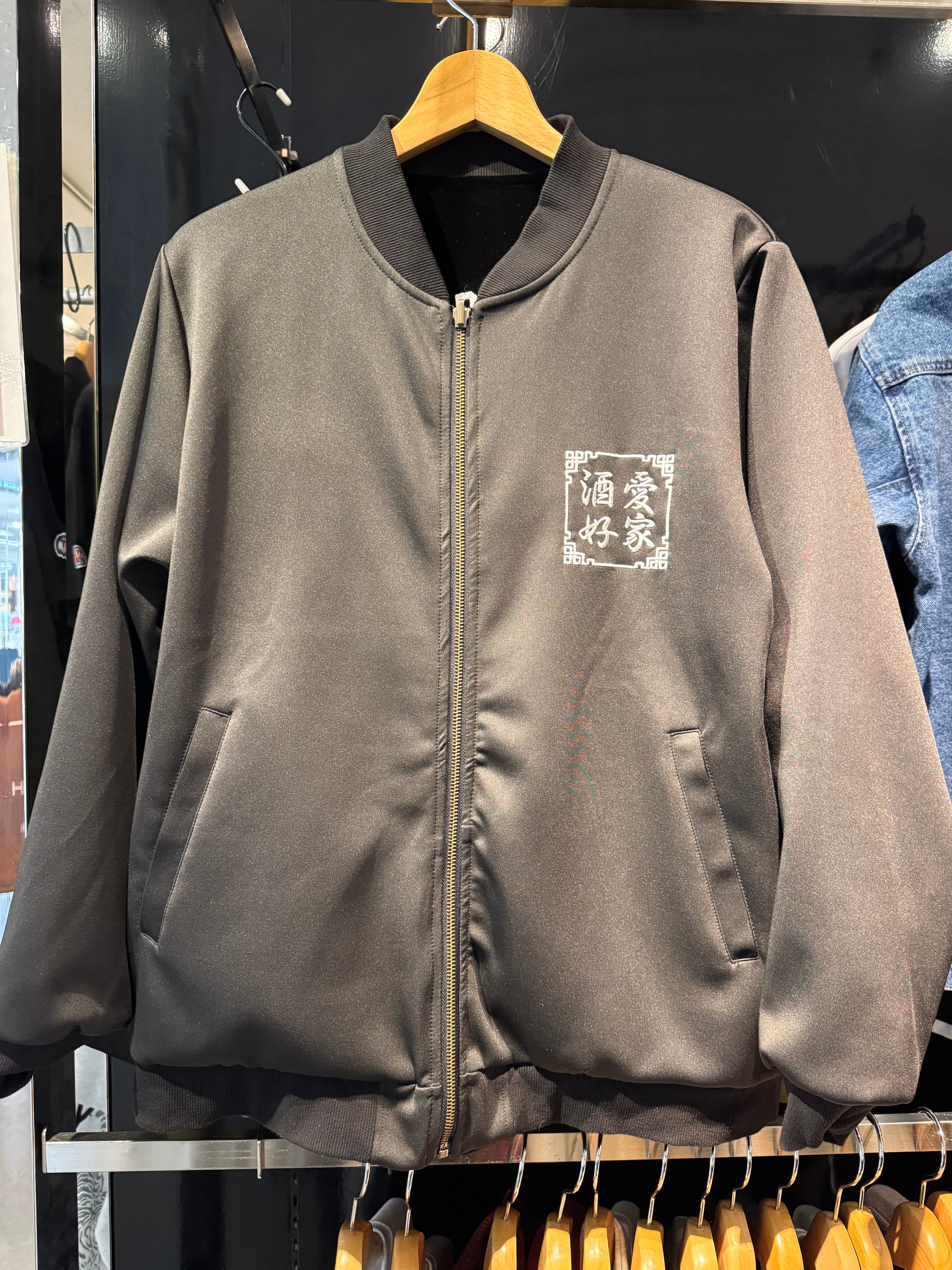 リバーシブル仕様になっていて胸には酒愛好家の刺繍。