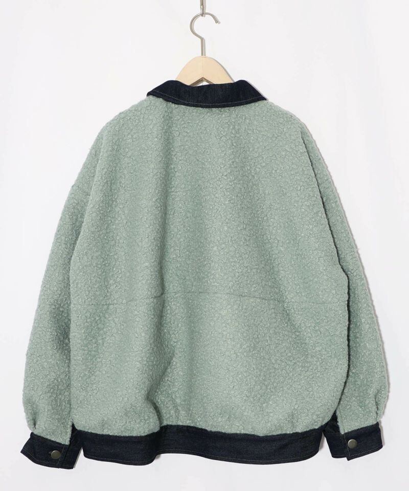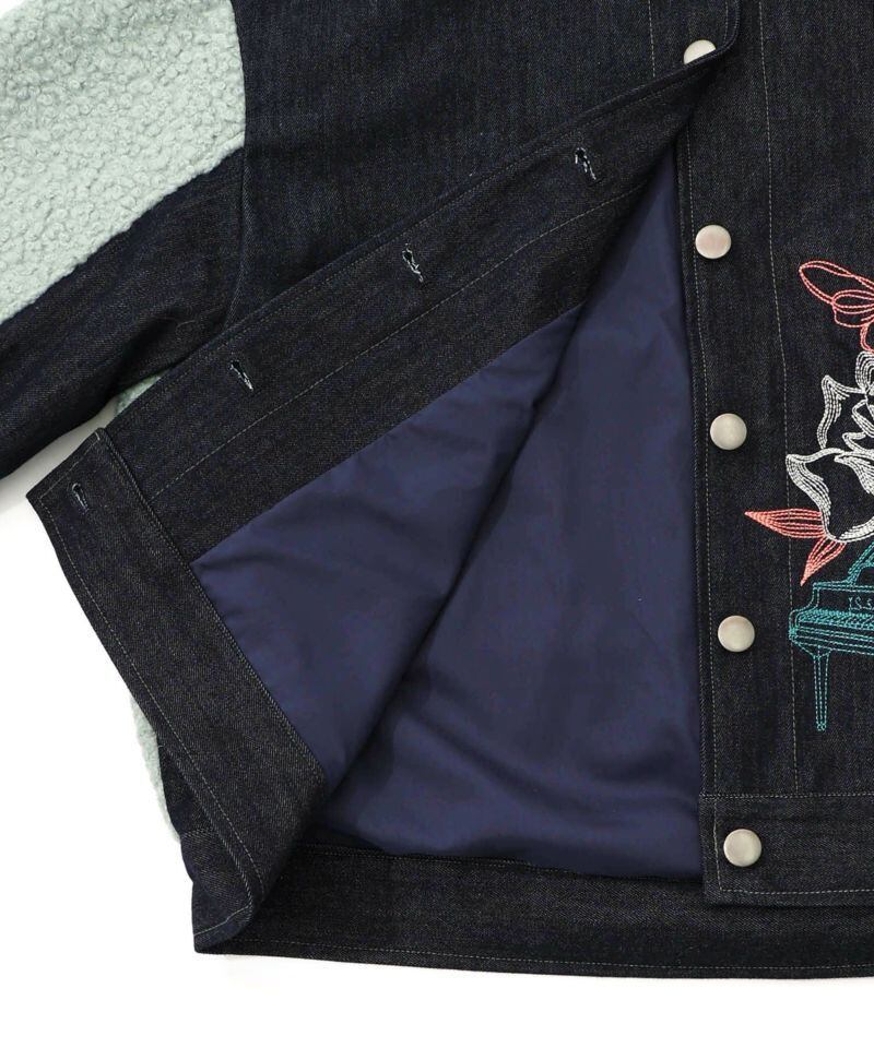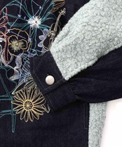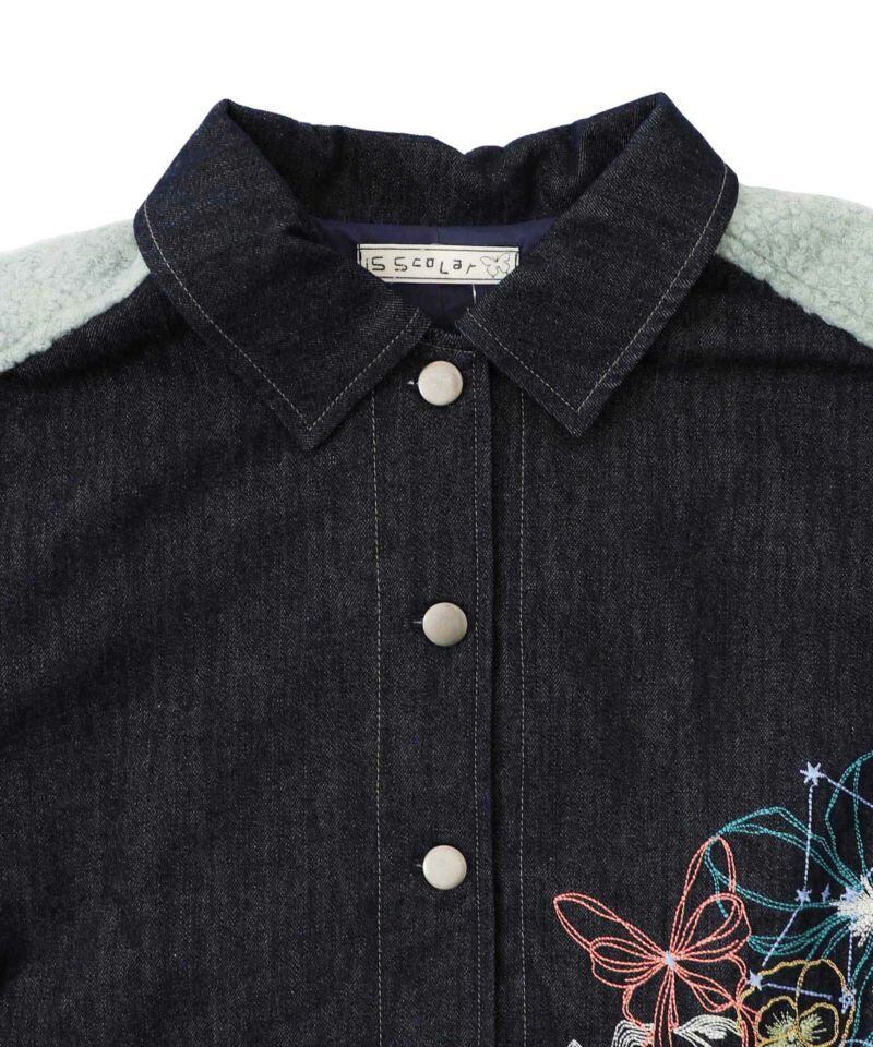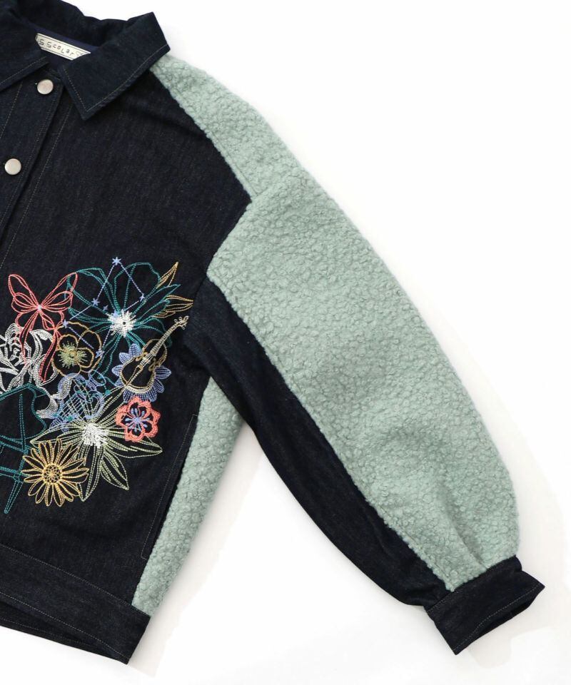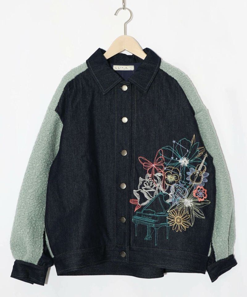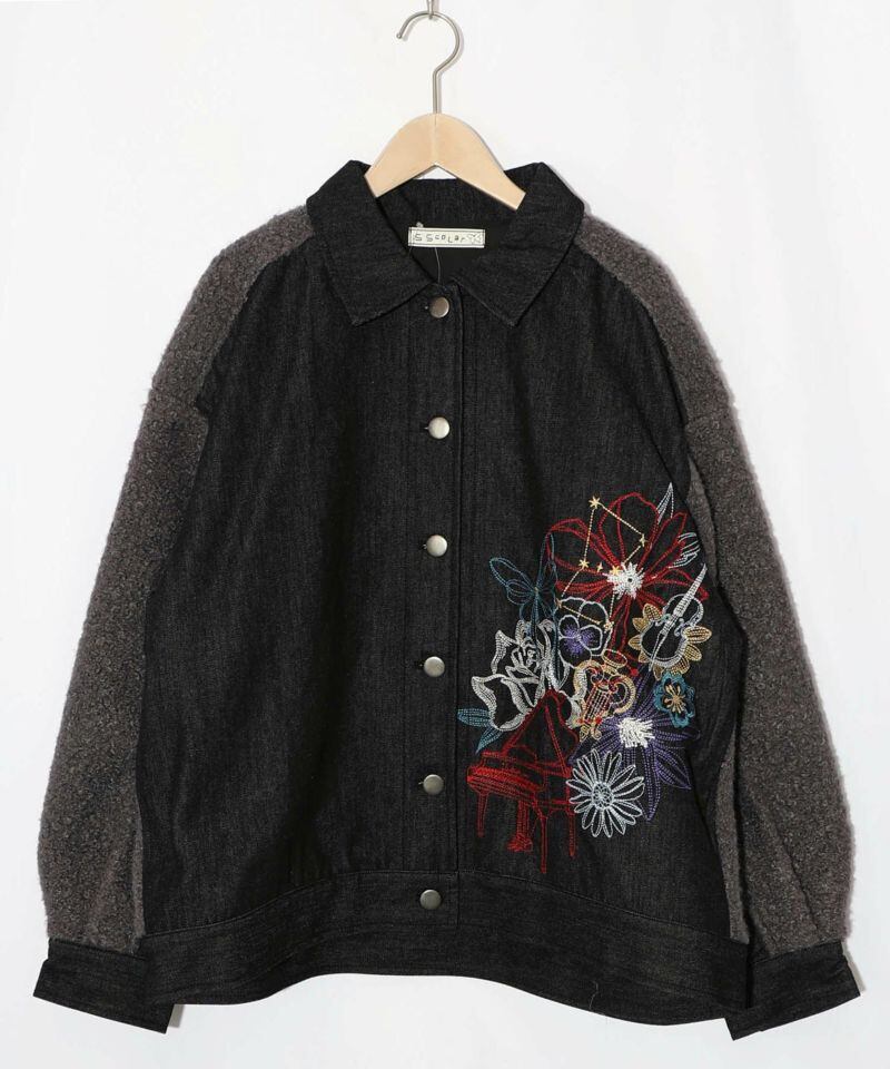 IS ScoLar(イズスカラー)花蝶刺繍デニム×プードルボア 切替ジャケット ブラック、サックス、ネイビー 553250