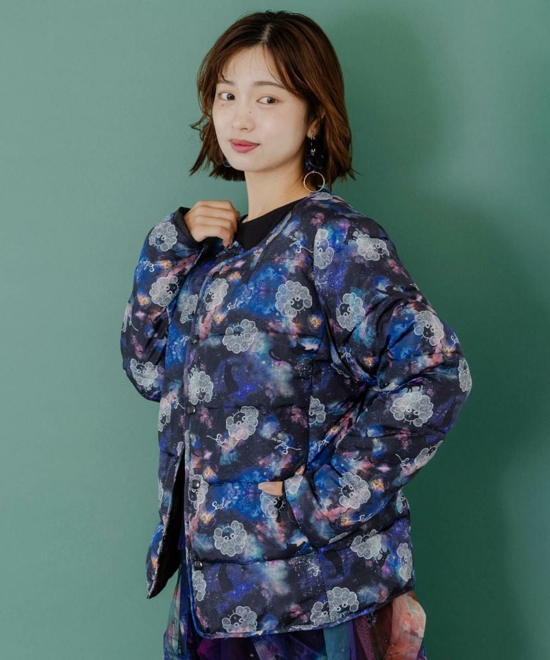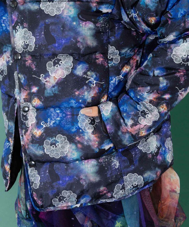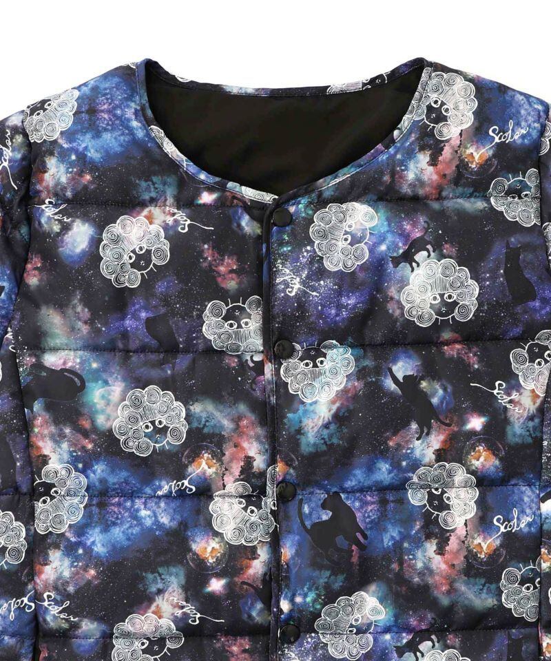 ScoLar(スカラー)スカラーちゃん×宇宙×ネコ柄リバーシブル中綿ブルゾン ブラック 153691