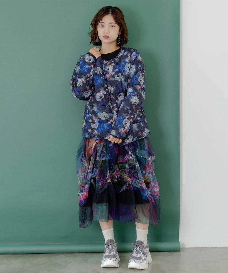 宇宙の背景に水彩やインクがにじんだような背景がキレイなショートブルゾンが登場!