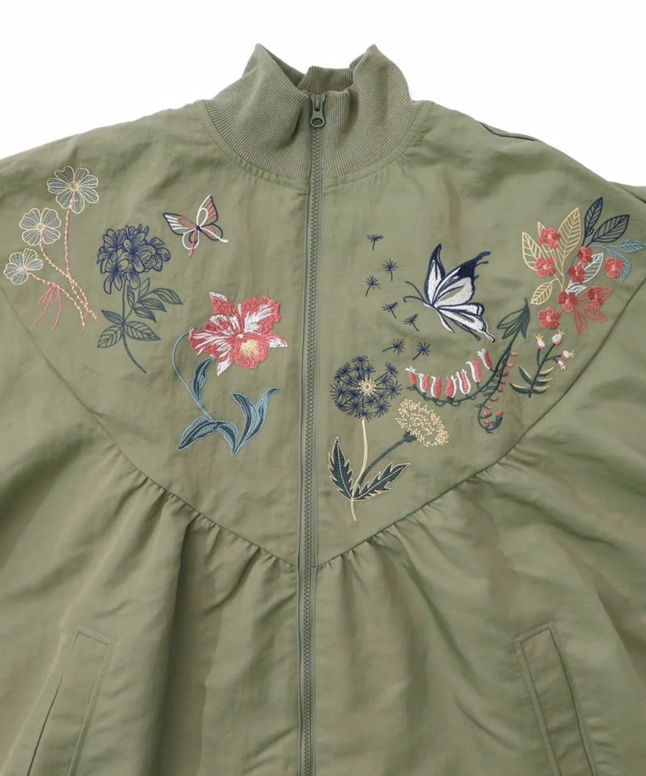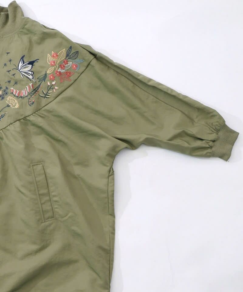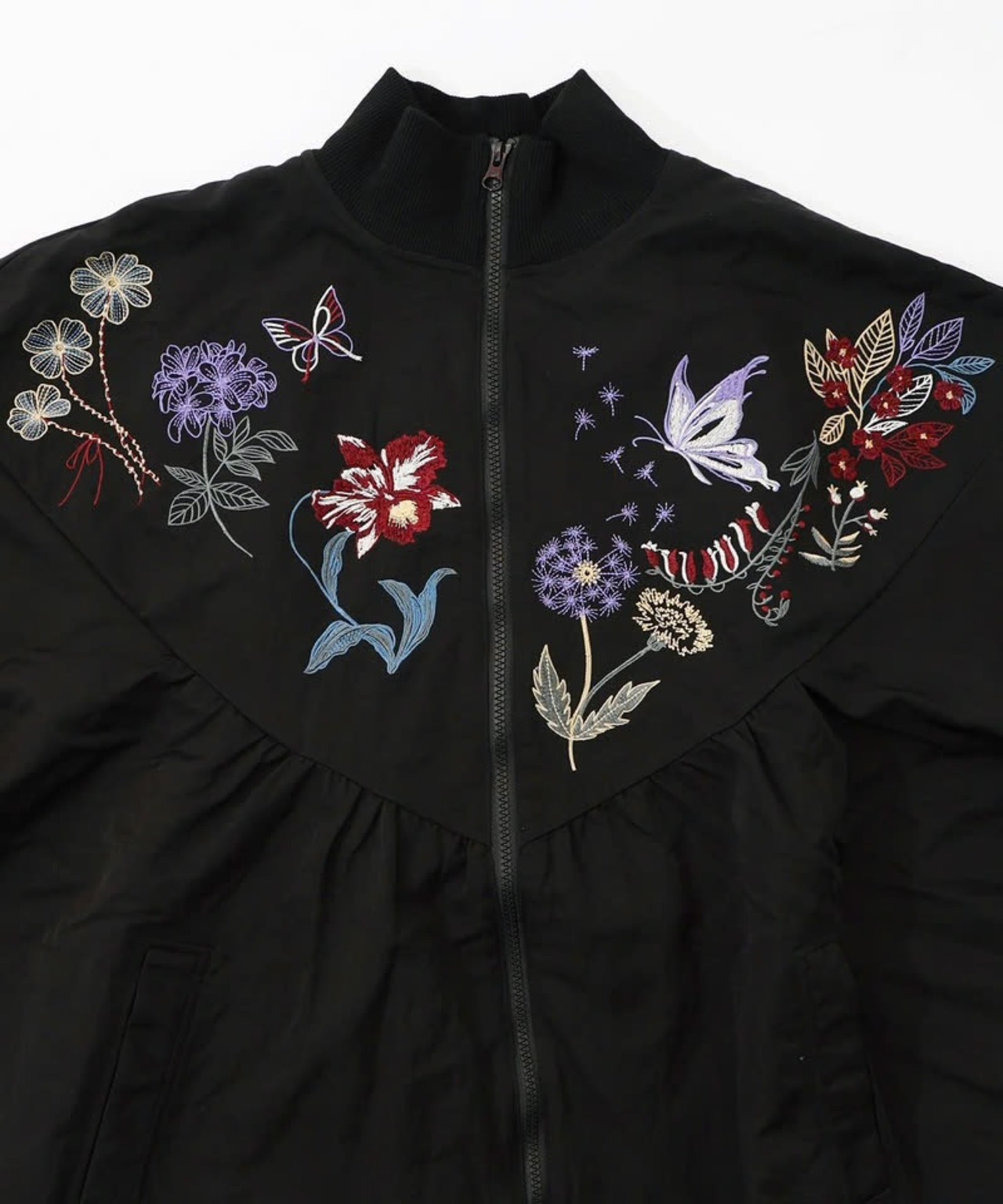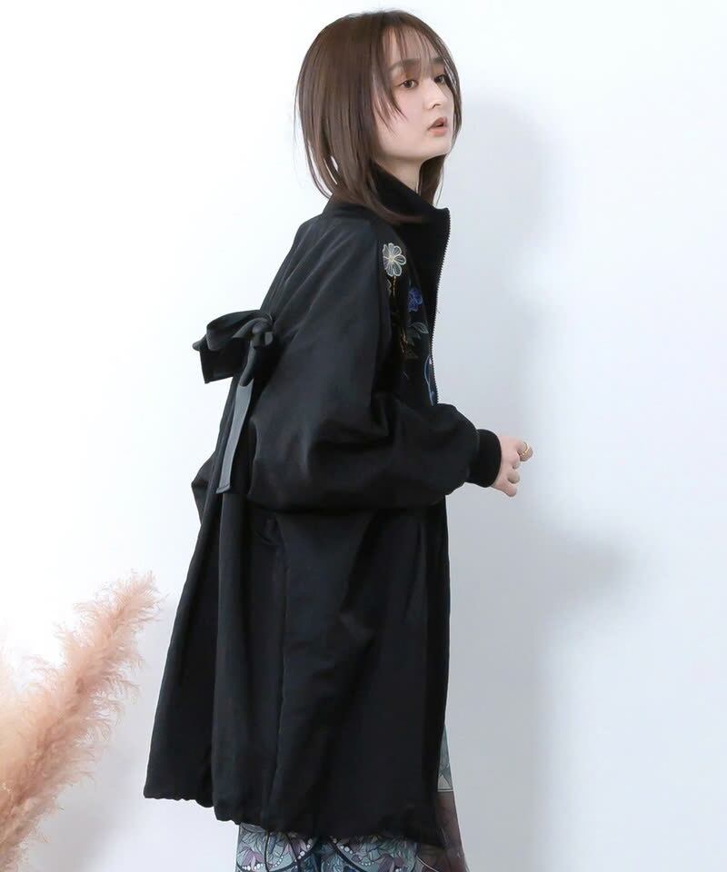 IS ScoLar(イズスカラー)リボン×花刺繍ドルマンスリーブブルゾン ブラック、ピンク、カーキ 561206
