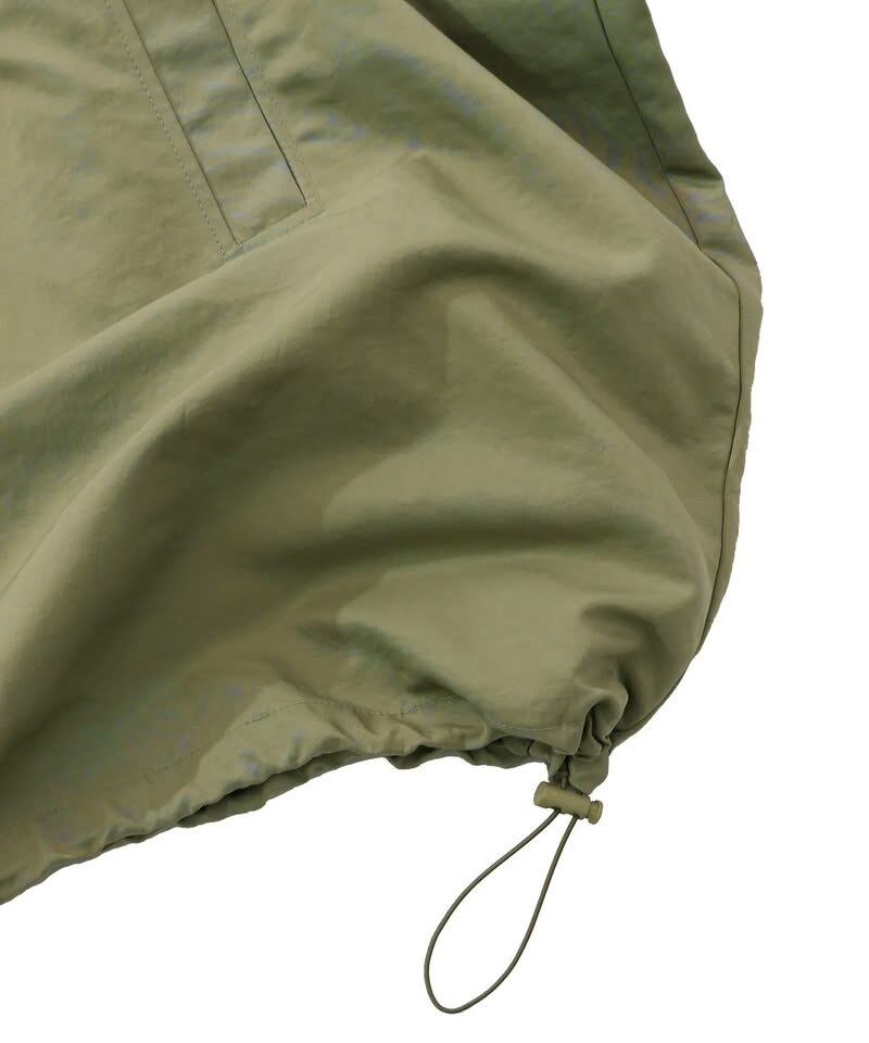 裾にはドローコードを配し、絞ることで丸みのあるシルエットにアレンジでき、