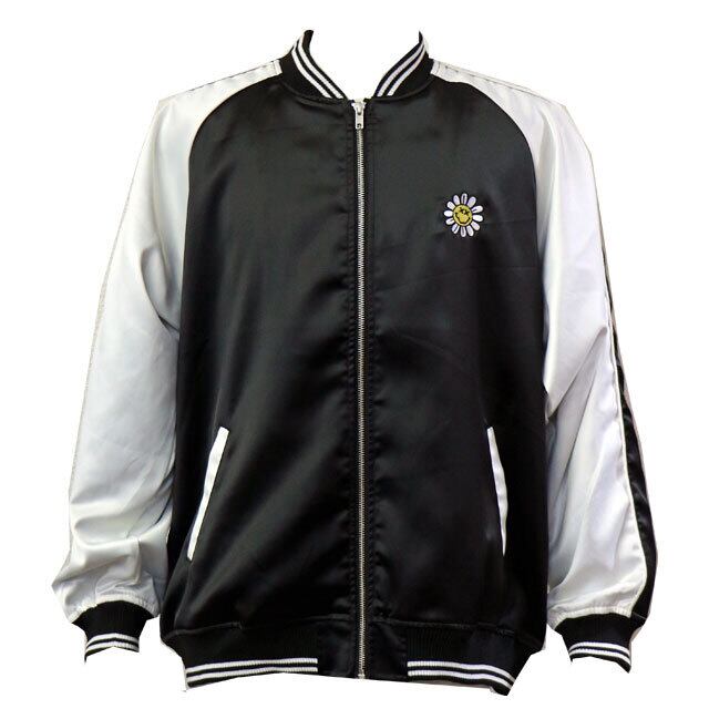 左胸にデイジーフラワーの刺繍、背面には大きめのデイジーフラワーと、「Smiley」のロゴのワッペンがついています。