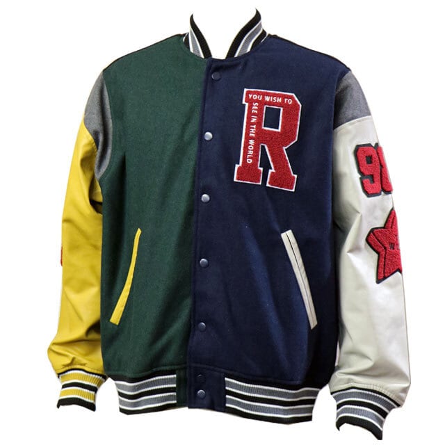 左胸にRのワッペン、右腕、左腕にワッペンがあります。