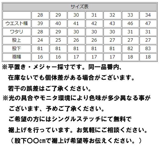 28:ウエスト幅39 ワタリ28 股上24 股下81 裾幅16