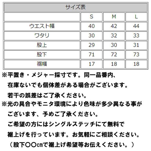 S:ウェスト幅40 ワタリ30 股上29 股下71 裾幅17