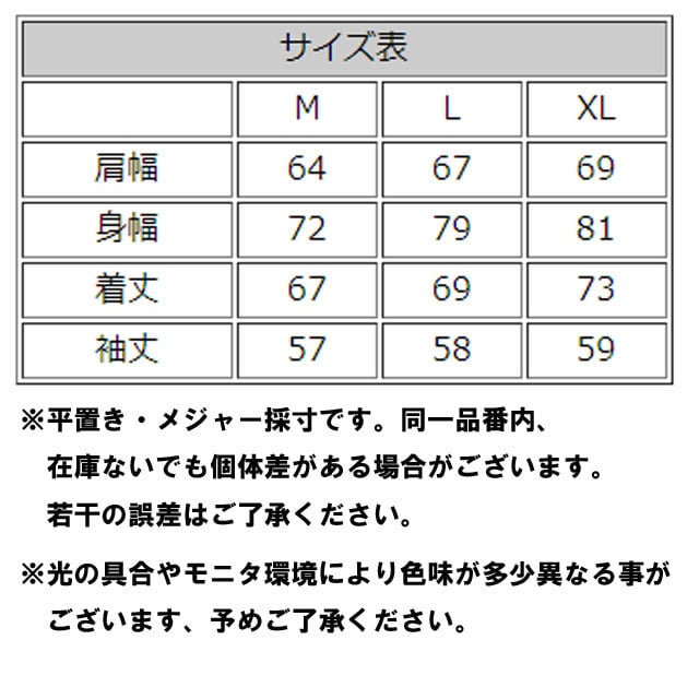 XL:肩幅69 身幅81 着丈73 袖丈59