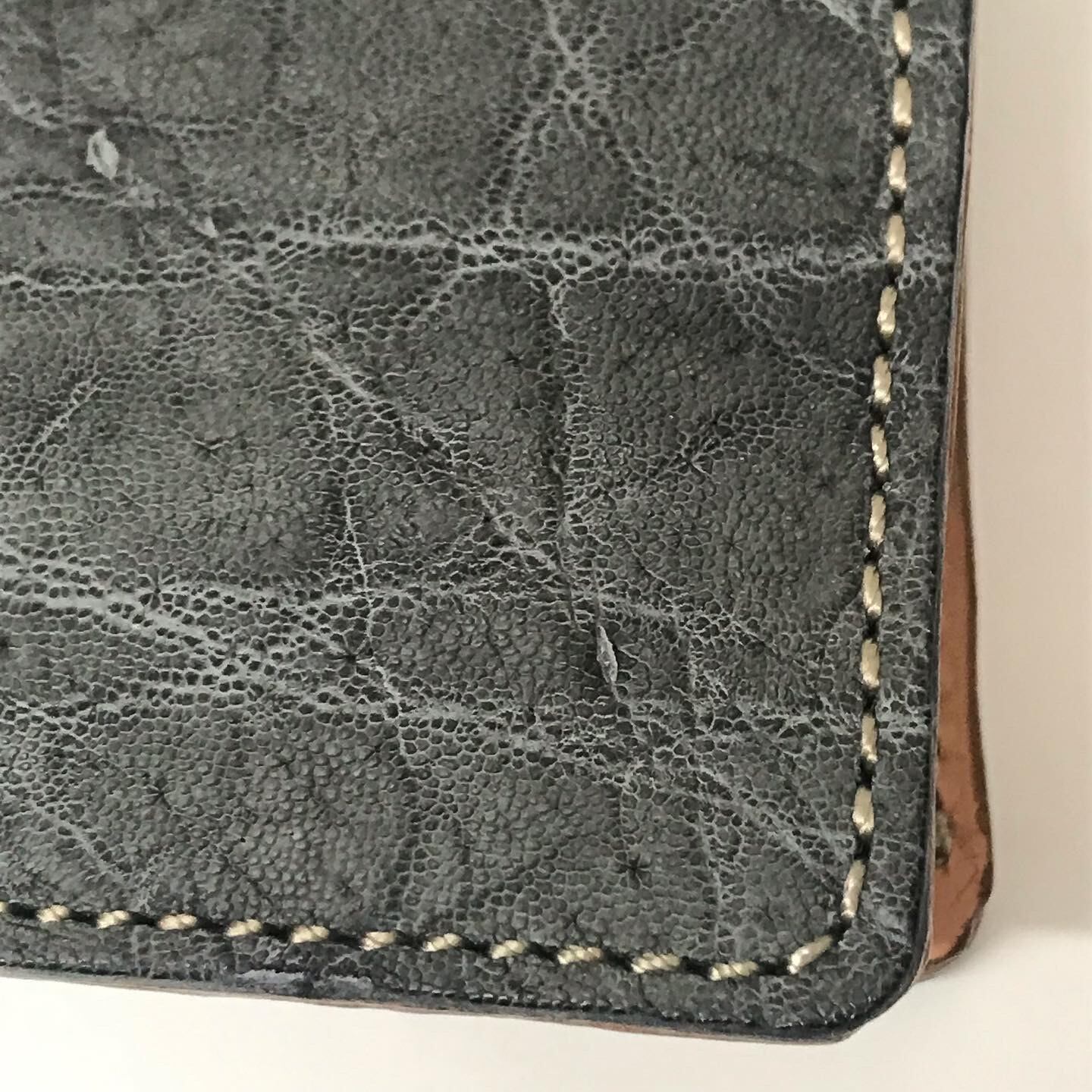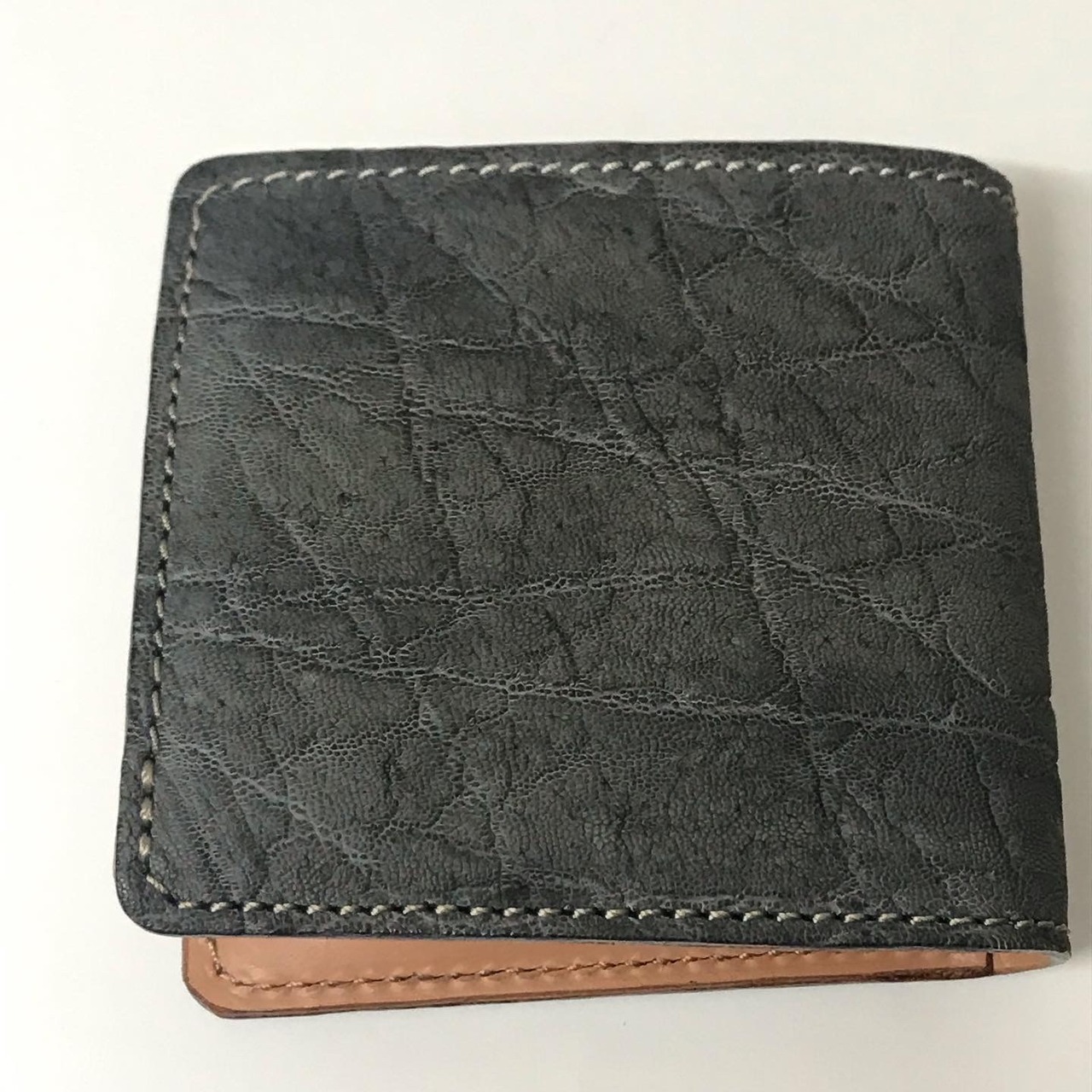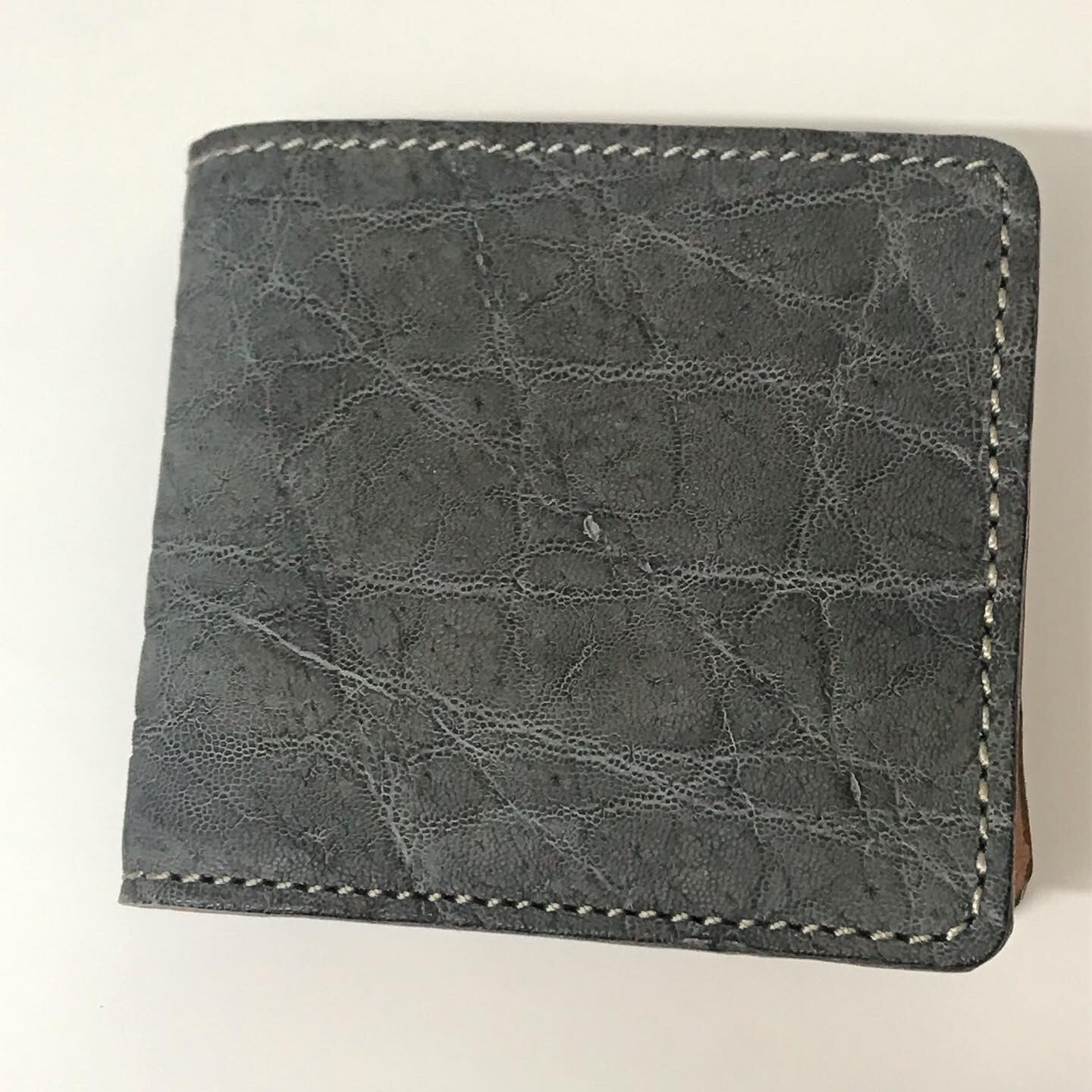 象革で作られたスタンダードタイプの二つ折りの財布です。