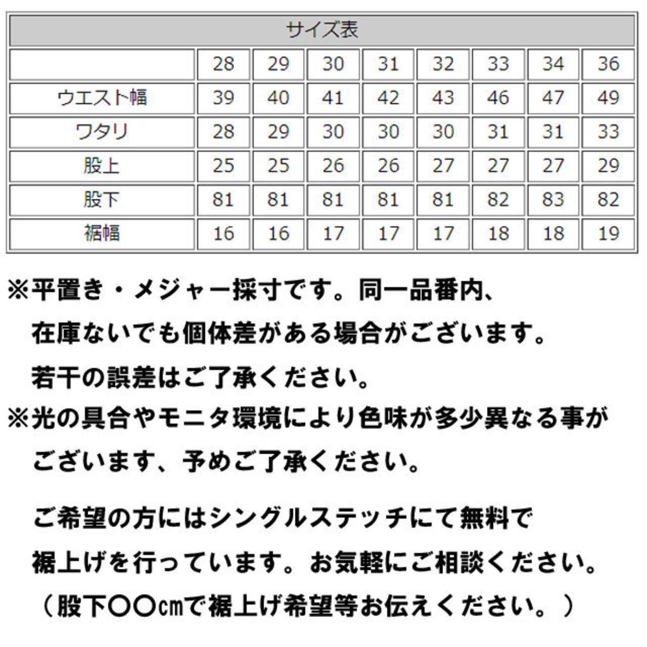 28:ウエスト幅39 ワタリ28 股上24 股下81 裾幅16
