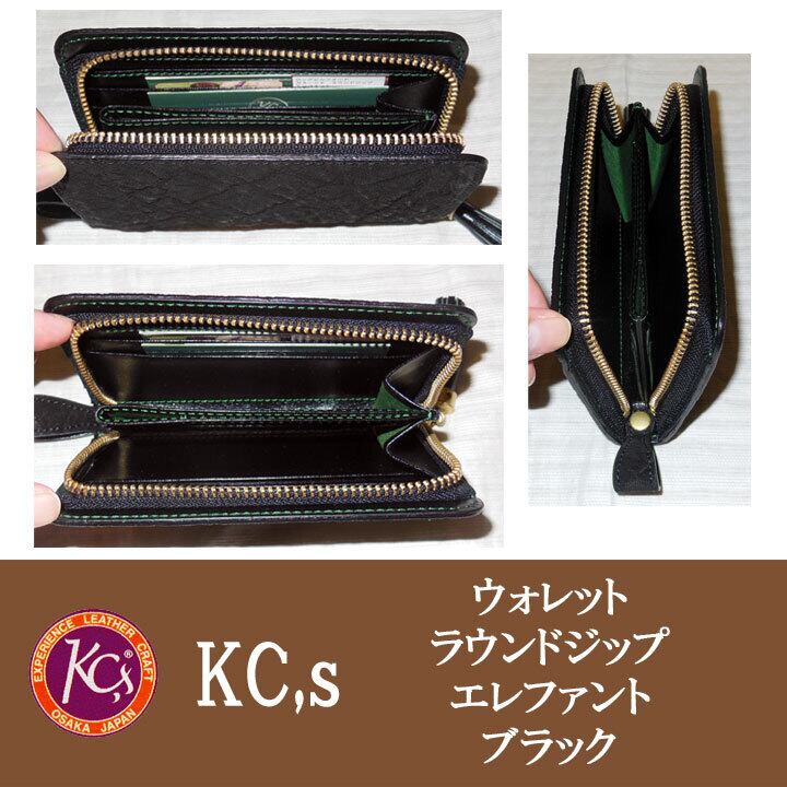 象革財布 日本製 ラウンドジップ エレファント(ブラック)KC,s(ケイシイズ)