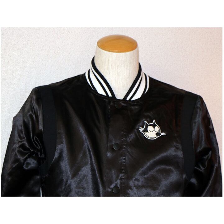 背中には、大きくフィリックスの顔の中にロゴが刺繍されています。