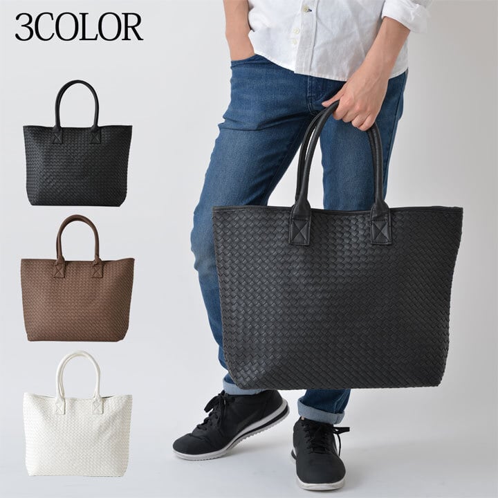 イントレチャートトートバッグ 無地 3色 900g メンズ レディース 男女兼用 ブラック ホワイト ブラウン