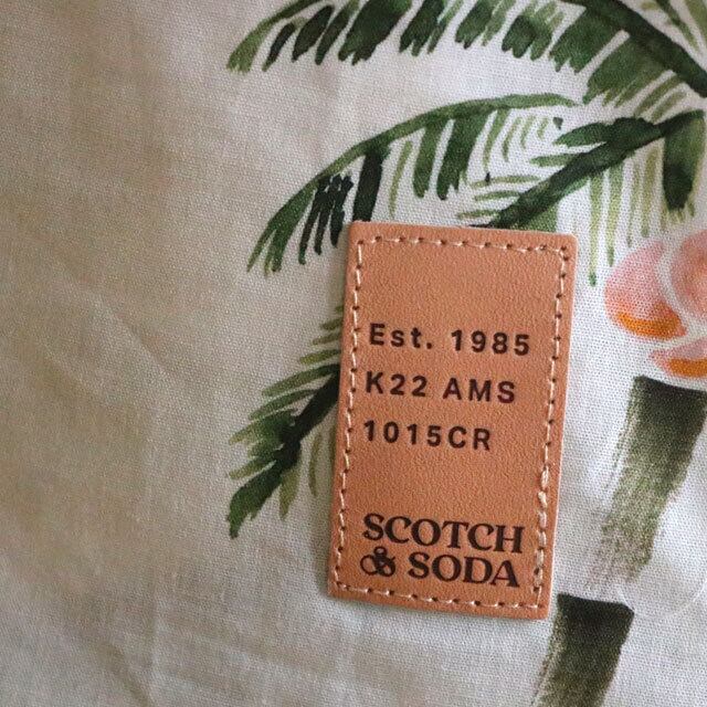 南国の風を感じる一枚、SCOTCH&SODA(スコッチ&ソーダ)の総柄半袖シャツです。アロハシャツやリゾートウェアとしても人気のある、ヤシの木柄が特徴的です。開襟デザインで、リラックス感溢れるスタイルを演出してくれます。