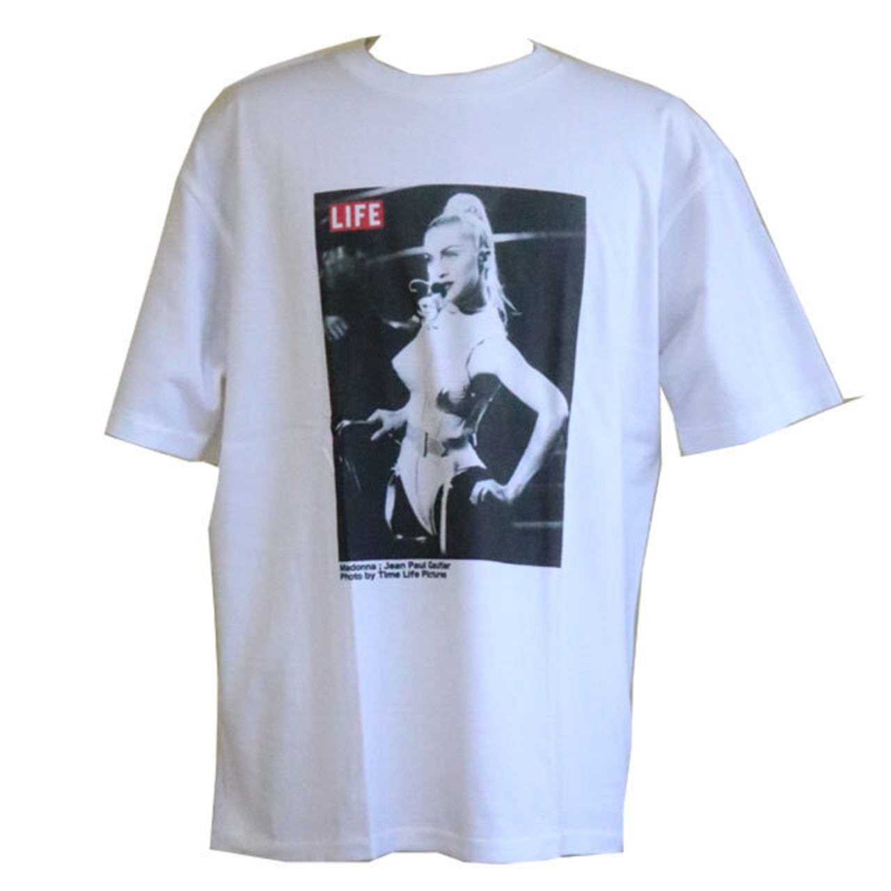 マドンナ Madonna 半袖Tシャツ SCREENSTARS(スクリーンスターズ) ホワイト 白色 Madonna;Jean Paul Gaultier Photo by Time Life Picutures プリント